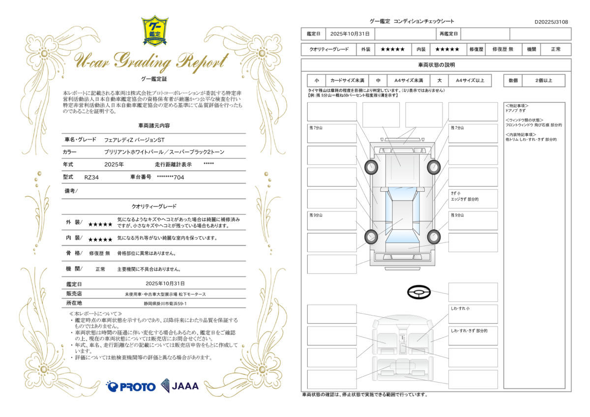 計260項目 保証項目につきましては、新車保証(メーカー保証)の内容と同じ(5年間の特別保証と3年間の一般保証)になります。新車保証の内容につきましては新車の保証書(メンテナンスノート)に記載してあります。 |