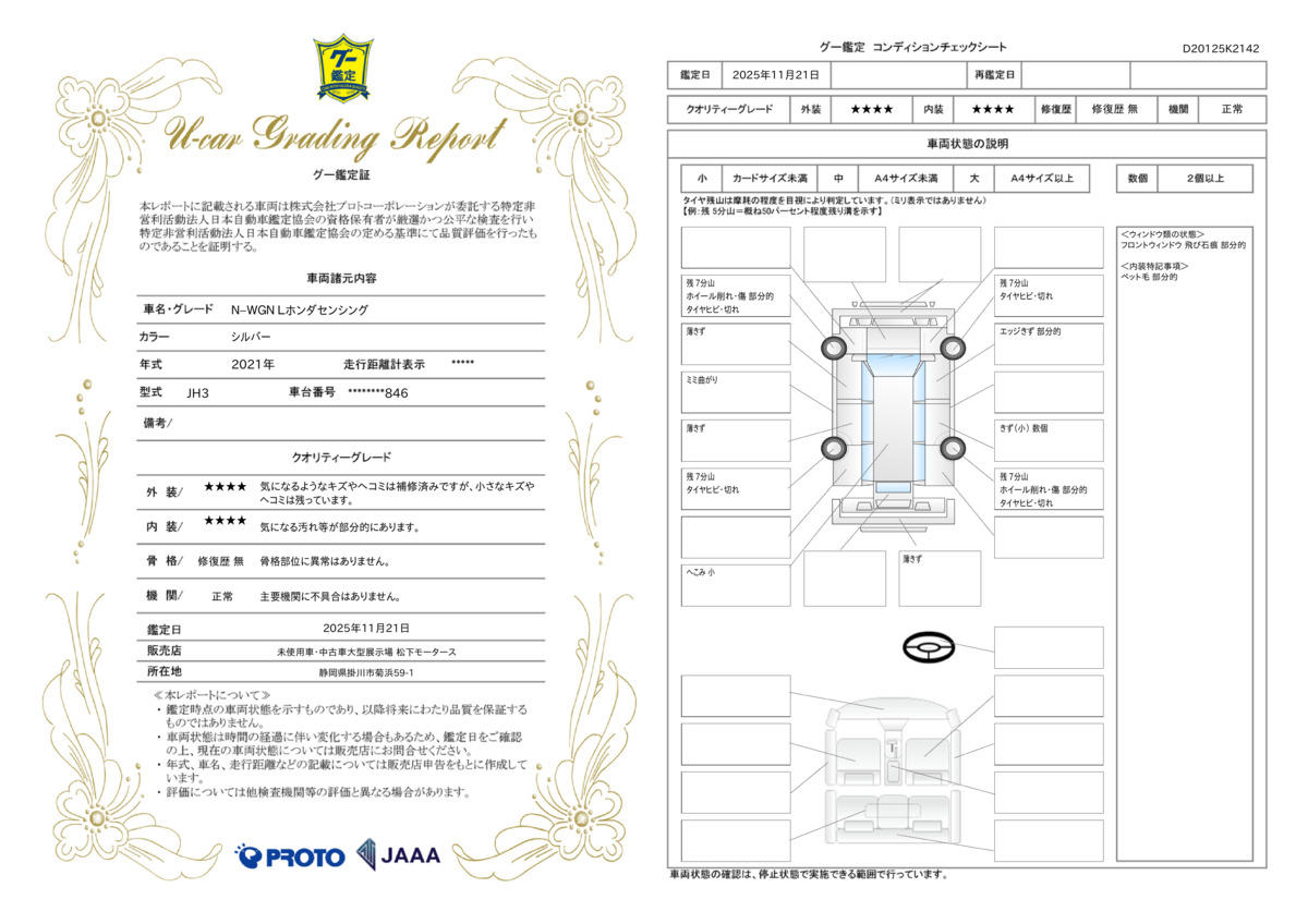 計260項目 保証項目につきましては、新車保証(メーカー保証)の内容と同じ(5年間の特別保証と3年間の一般保証)になります。新車保証の内容につきましては新車の保証書(メンテナンスノート)に記載してあります。 |