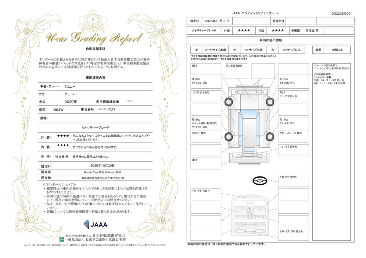 HONDA中古車認定ディーラー『U−Select静岡』です。新車からの1オーナー車、コンディションが良い車両を取り揃えております。車両状態証明書付きです。 3