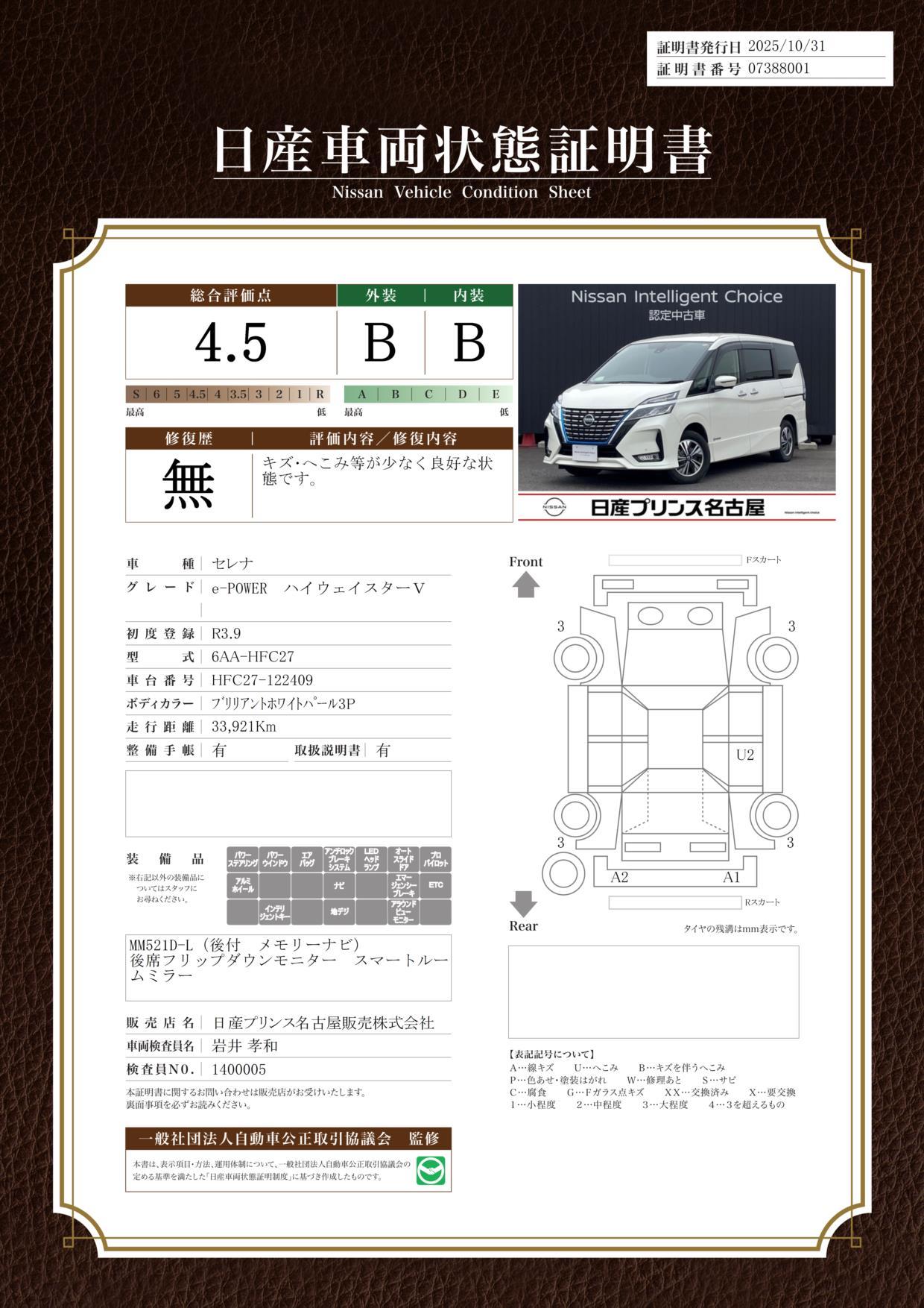 選ぶならワンランク上の安心を。N i s s a n Intelligent choice!5年未満/走行距離5万Km以内 車輌評価4.5以上 徹底した点検整備 2年間の無料保証。
