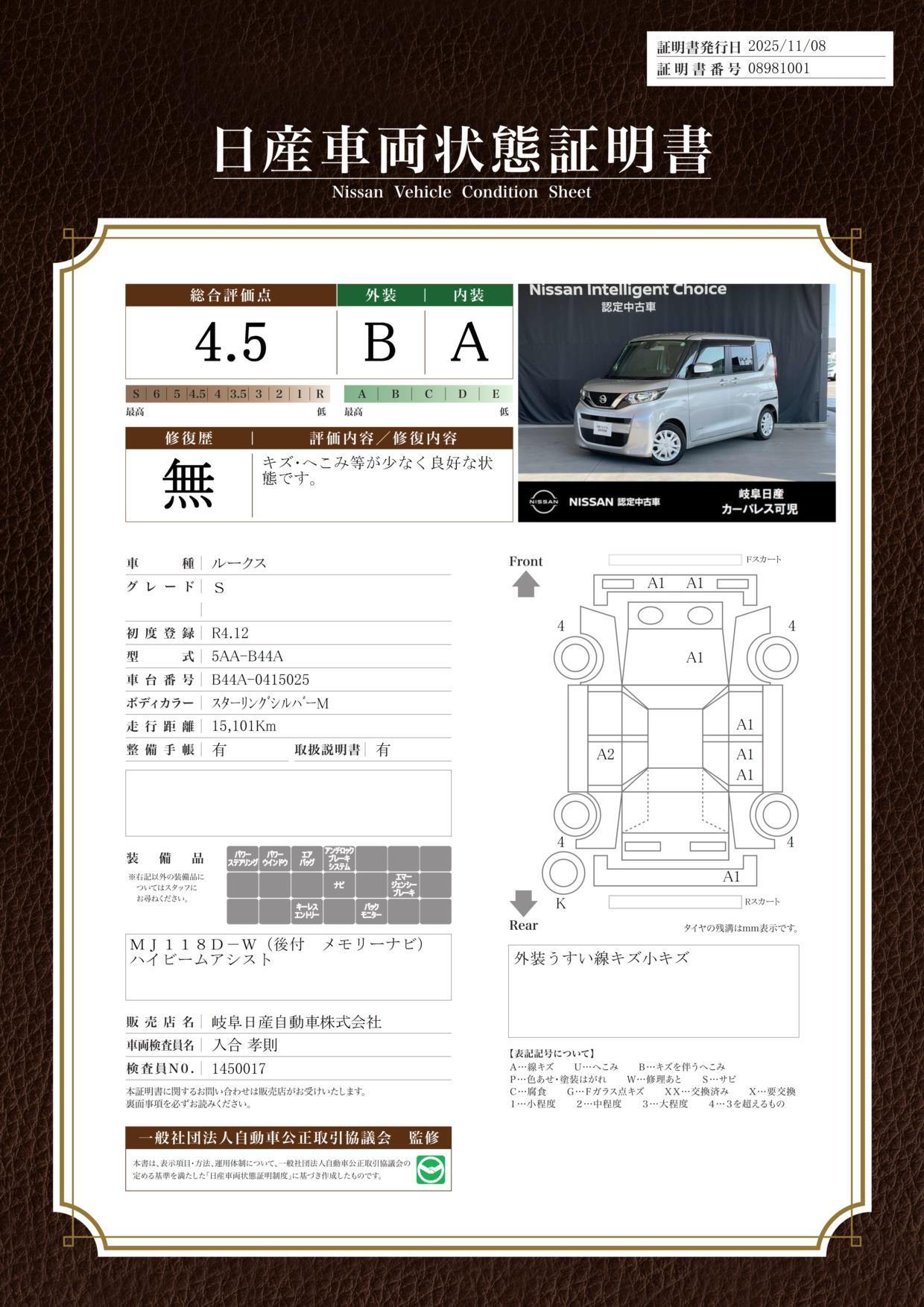 信頼と安心の日産の3年保証つき。※条件があるので詳しくはカーライフアドバイザーまで! |