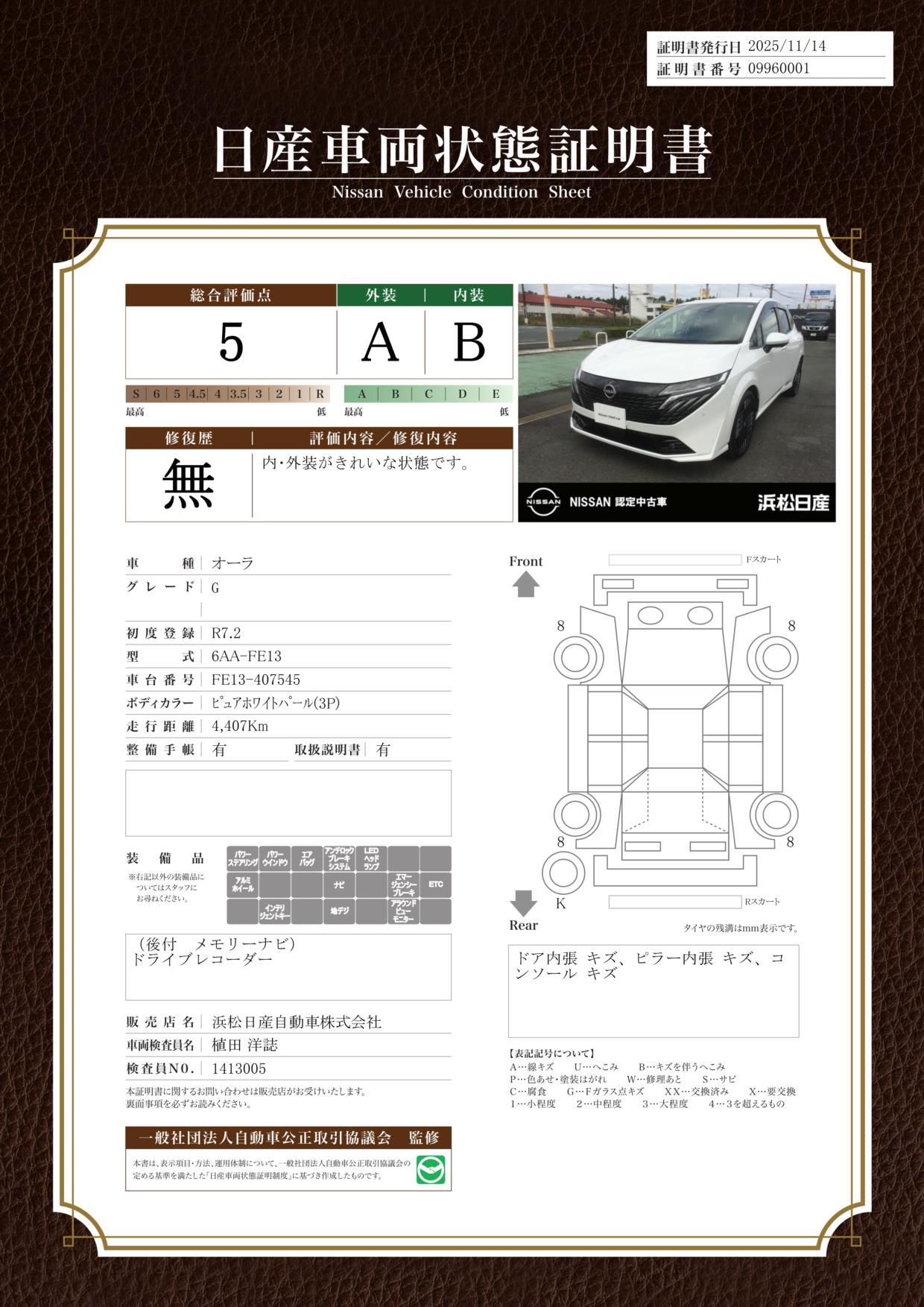 高年式のお車は新車保証を継承してお渡し致します。新車保証の内容は新車登録日から一般保証は3年6万キロ、特別保証は5年10万キロです。詳しくはスタッフまでお尋ね下さいませ。
