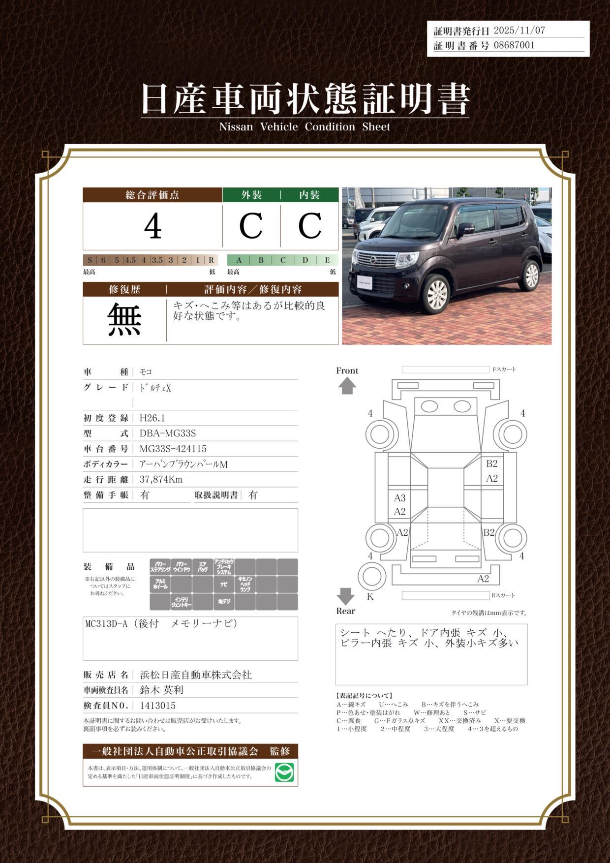 | 保証について | [保証付]:12ヶ月・走行無制限 |