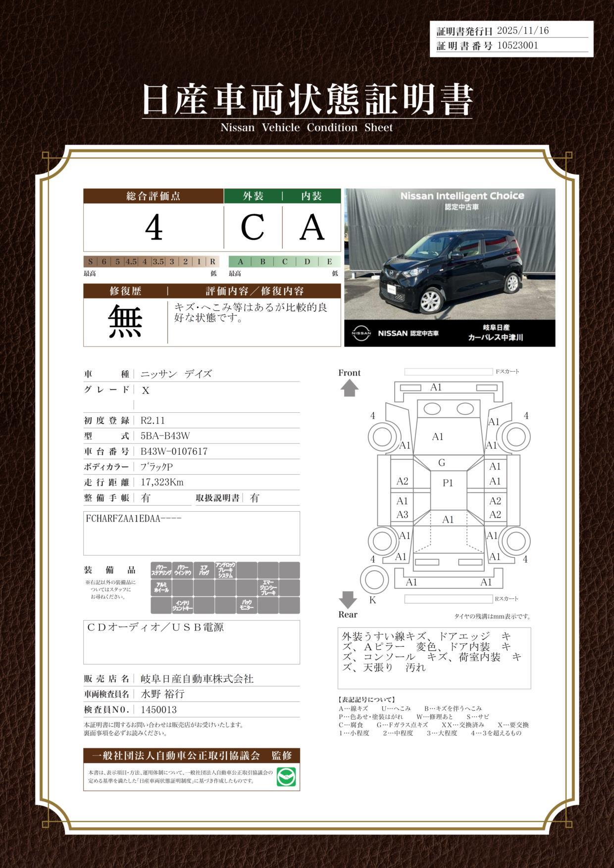 信頼と安心の日産の3年保証つき。※条件があるので詳しくはカーライフアドバイザーまで! |