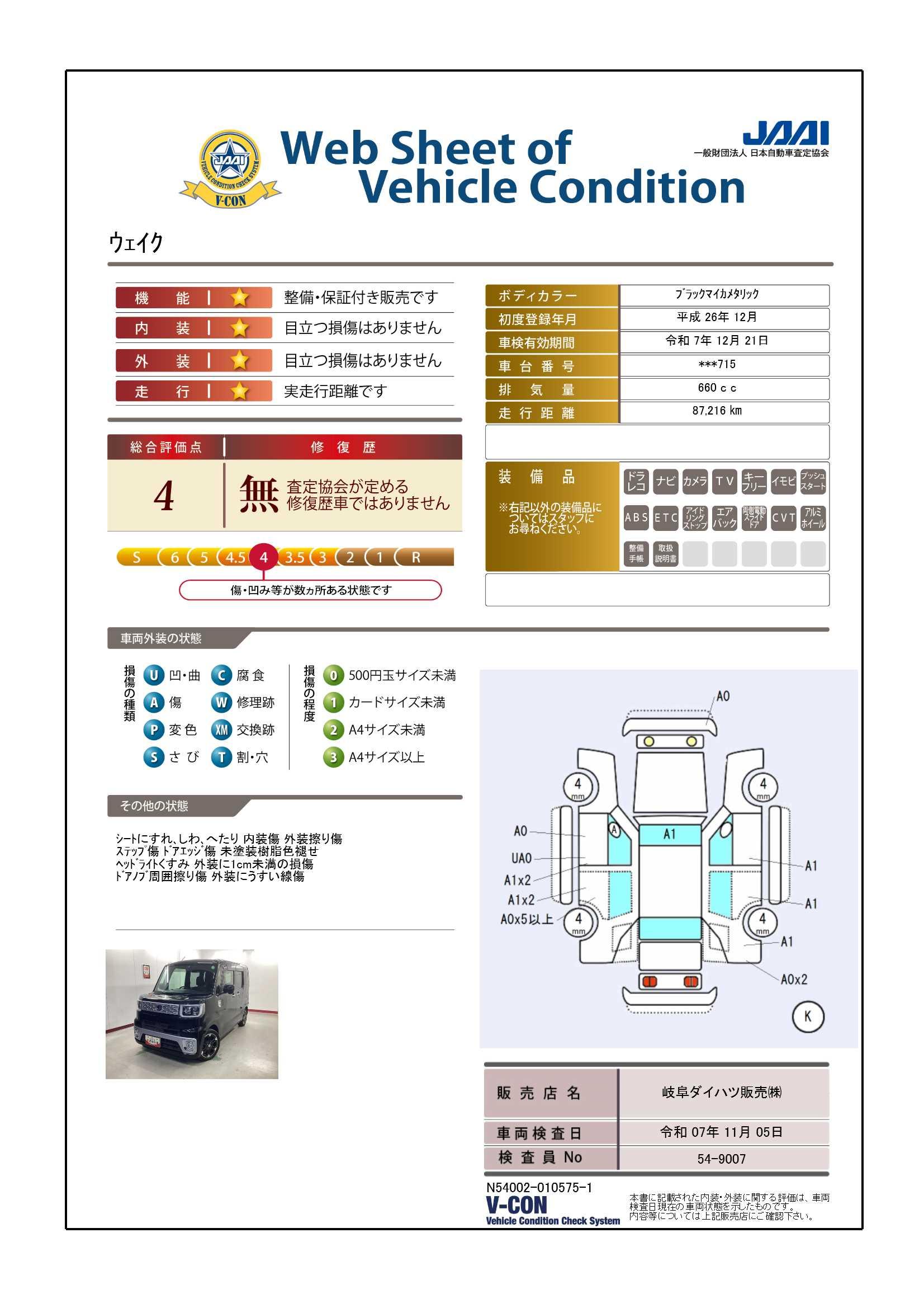 [保証付]:12ヶ月・走行無制限 有償延長保証:対象 |