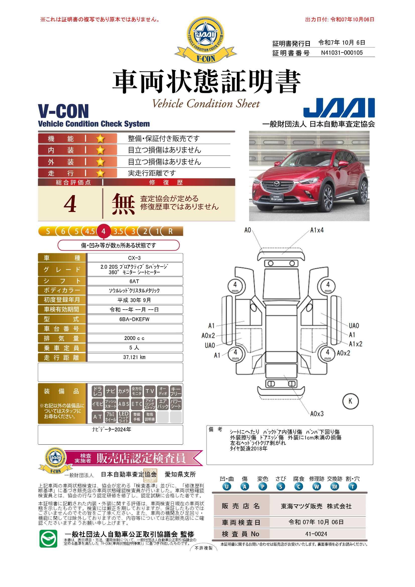 こちらのお車のご契約にはご来店での現車確認を必須条件とさせていただきます。 4