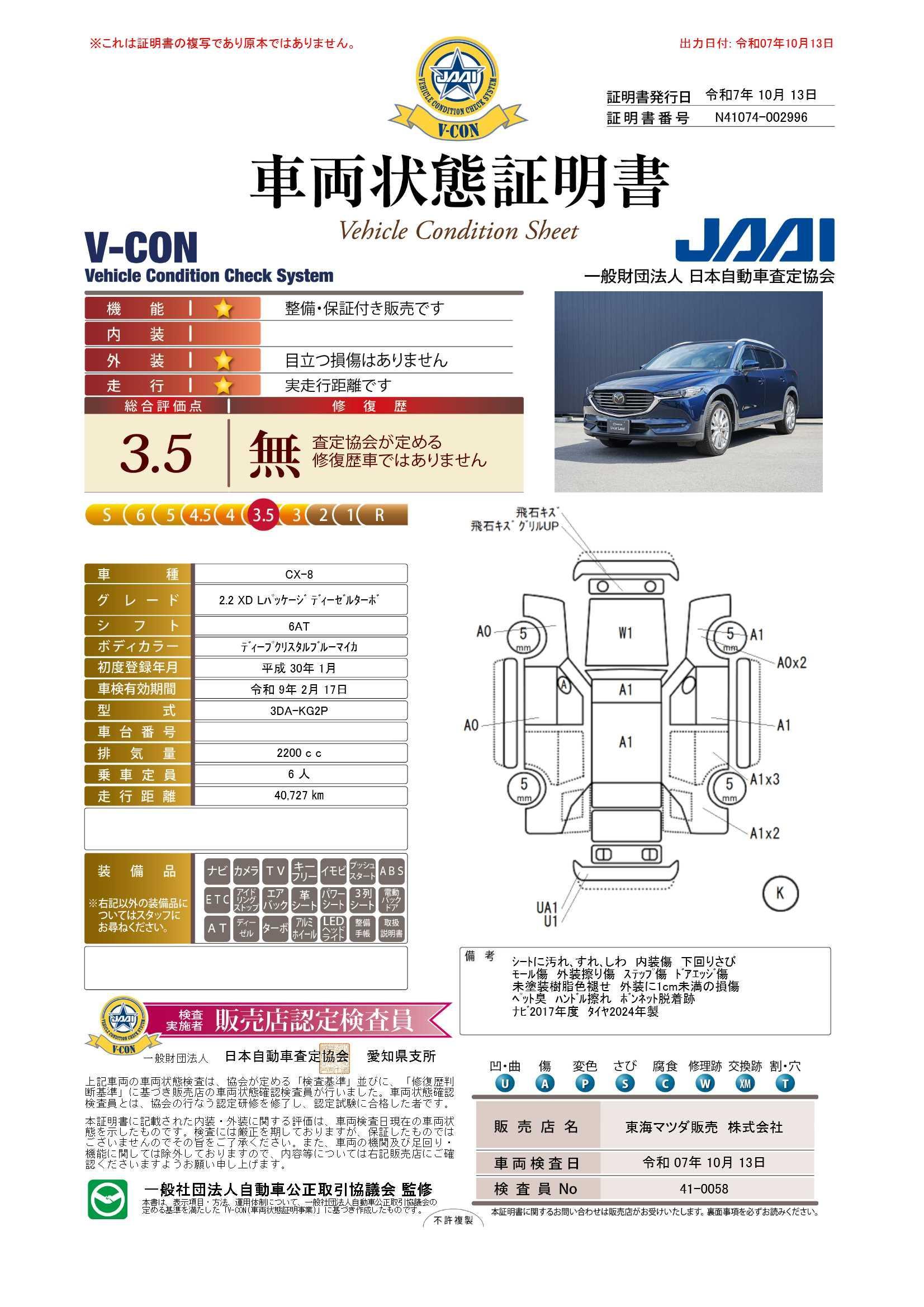 東海マツダの中古車は、全車保証付きで購入後も安心です。