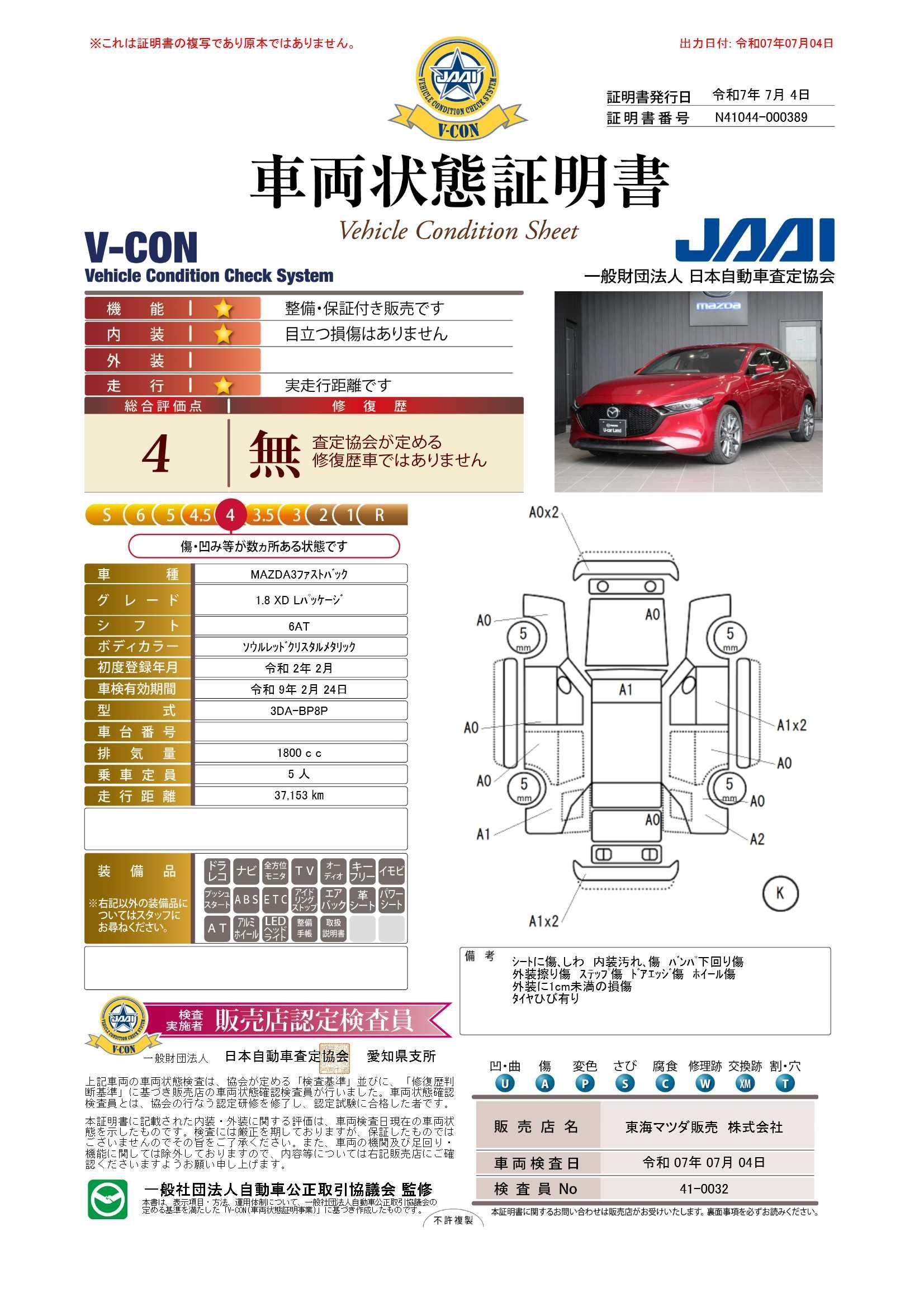 東海マツダの中古車は、全車保証付きで購入後も安心です。