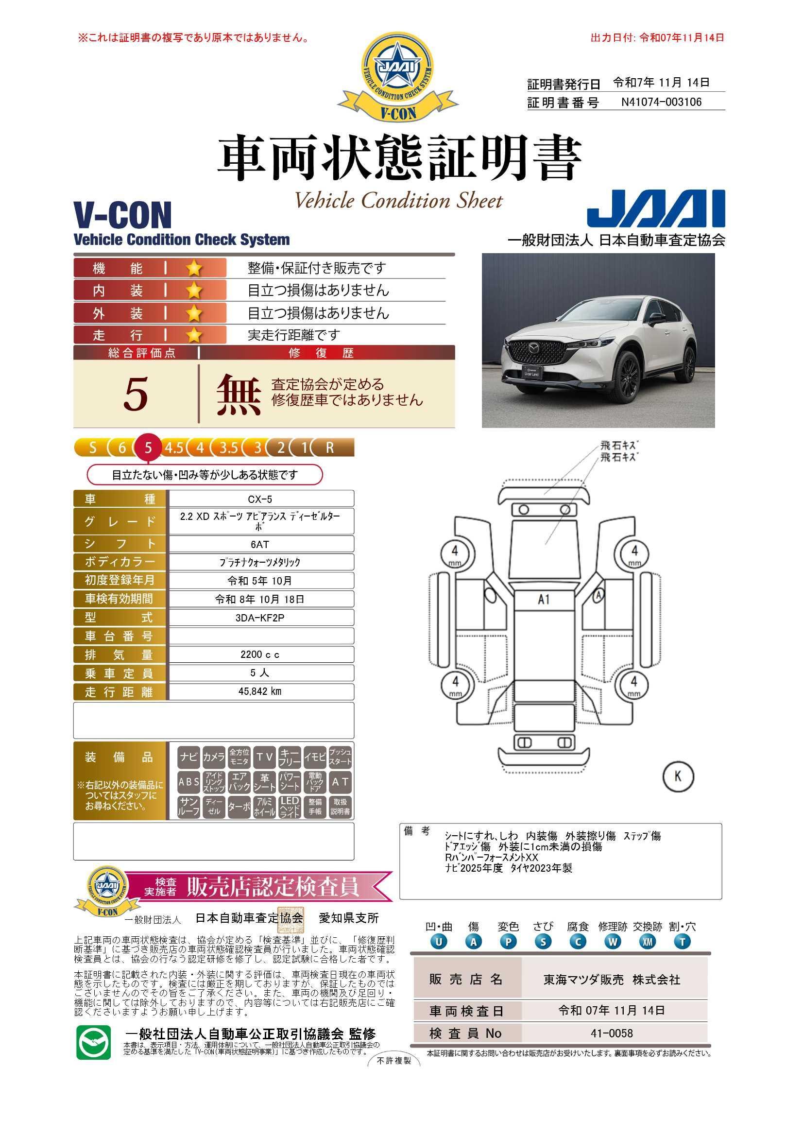 東海マツダの中古車は、全車保証付きで購入後も安心です。