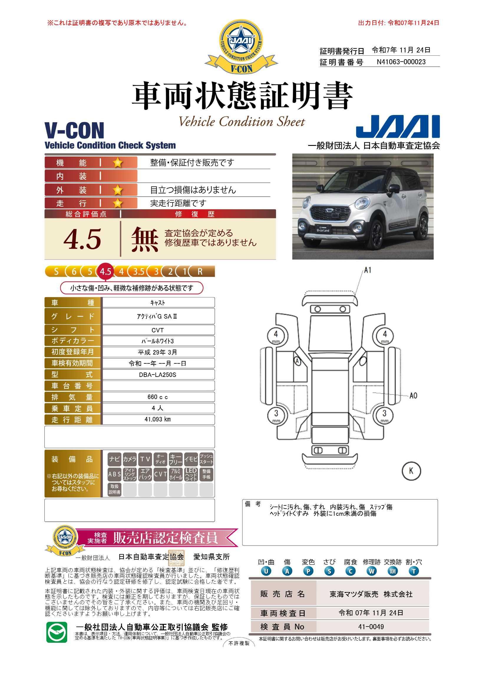 キャスト アクティバG SAII 衝突被害軽減システム バックカメラ 0201414A20251124R001 17