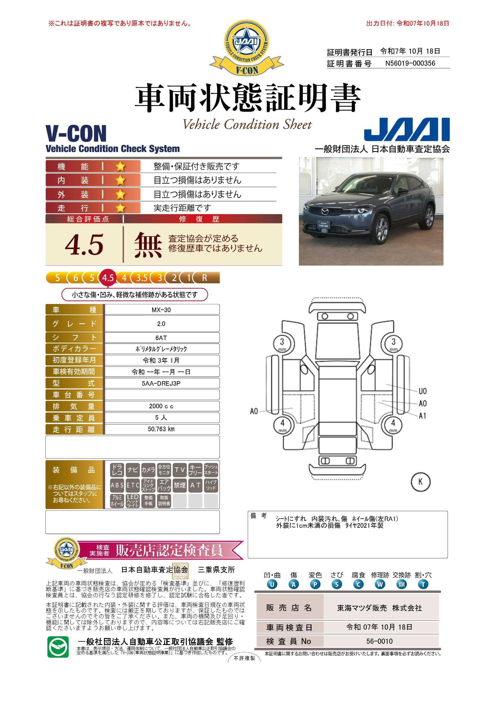 東海マツダの中古車は、全車保証付きで購入後も安心です。