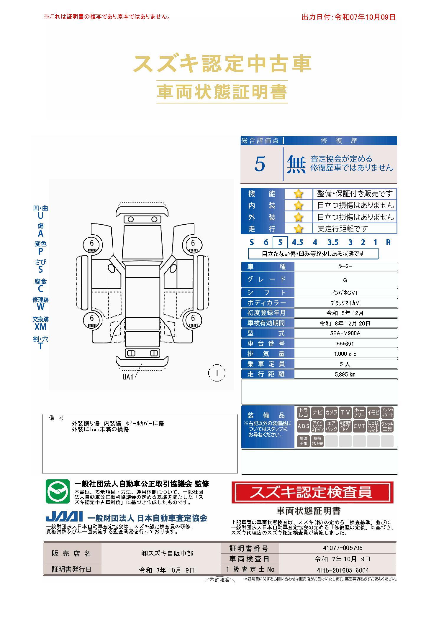 スズキ1級査定士がしっかりチェック!車両状態証明書で商品車の状態をしっかりご確認頂けます! 80