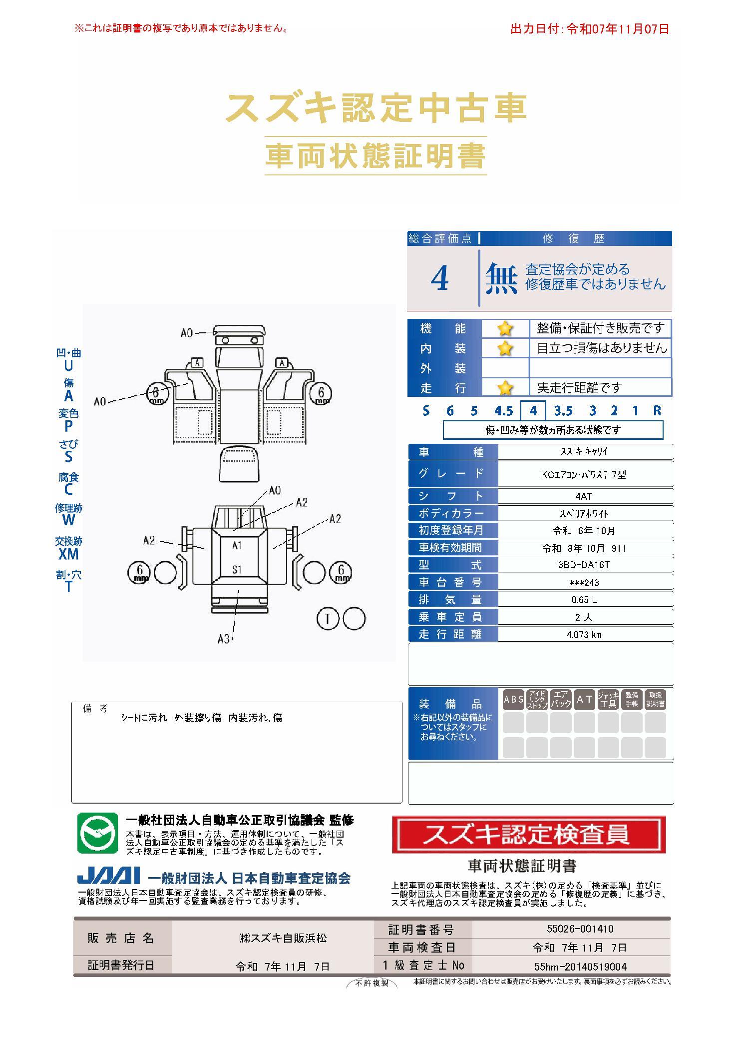 キャリイトラック KCエアコン パワステ 7型 オートライト 0601500A20251103S005 4