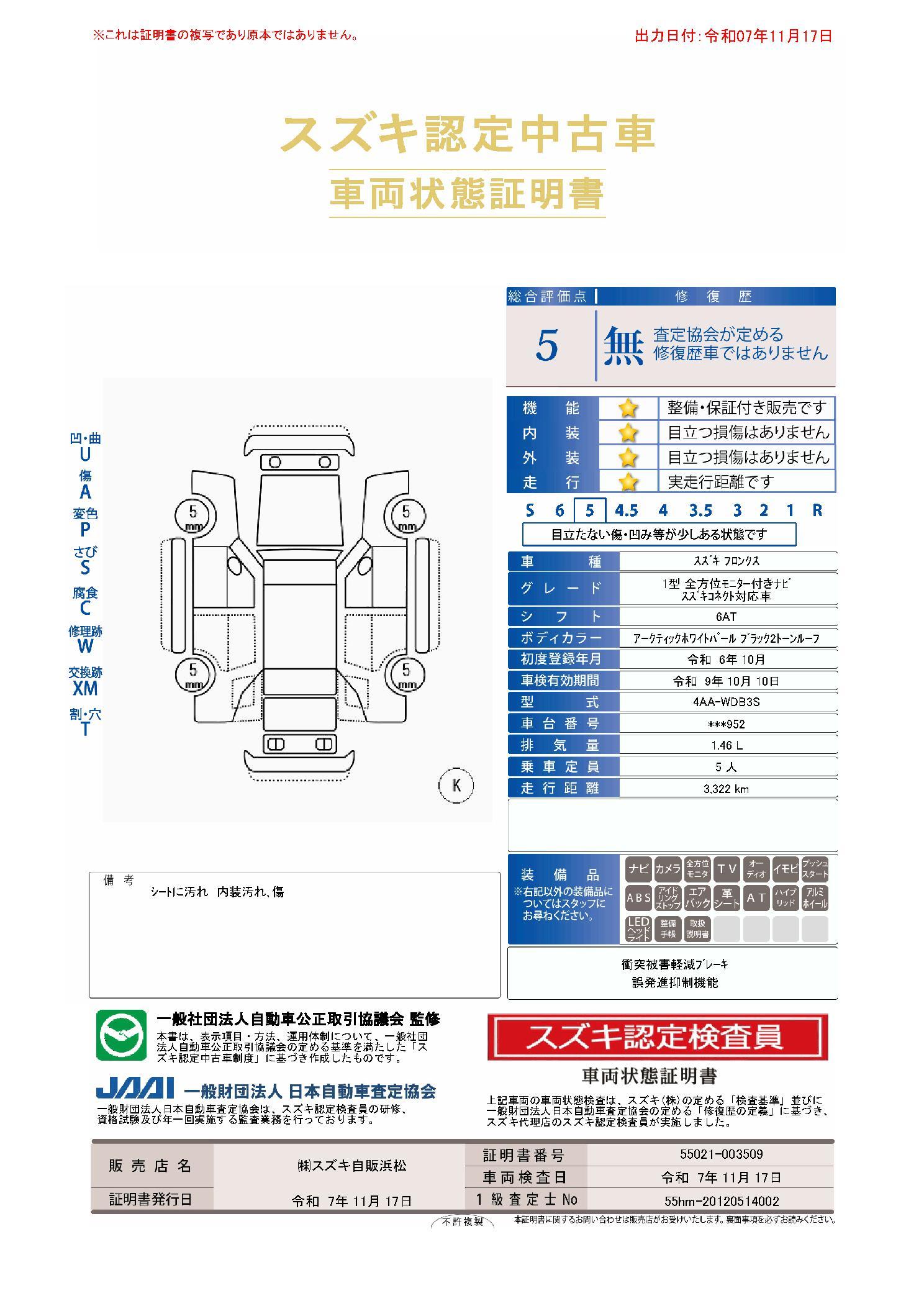 フロンクス 1型 全方位モニター付メモリーナビ スズキコネクト対応車 バックカメラ 0600061A20251118S005 38