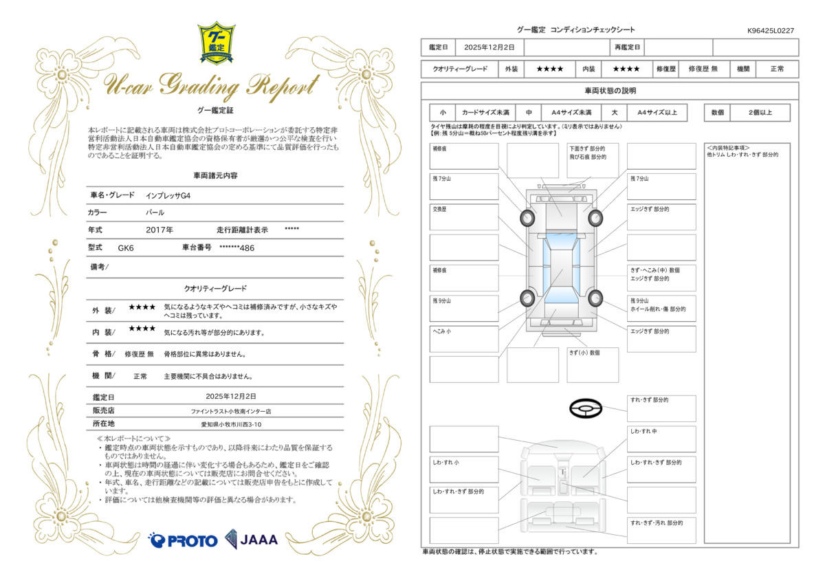 | 保証項目 | その他、スタンダード・プラチナ保証をご用意。【スタンダード・プラチナ保証】では対象項目が業界最高水準の400部位以上!消耗品以外は保証にてご対応出来ます。詳細は店舗へお問い合わせください! |