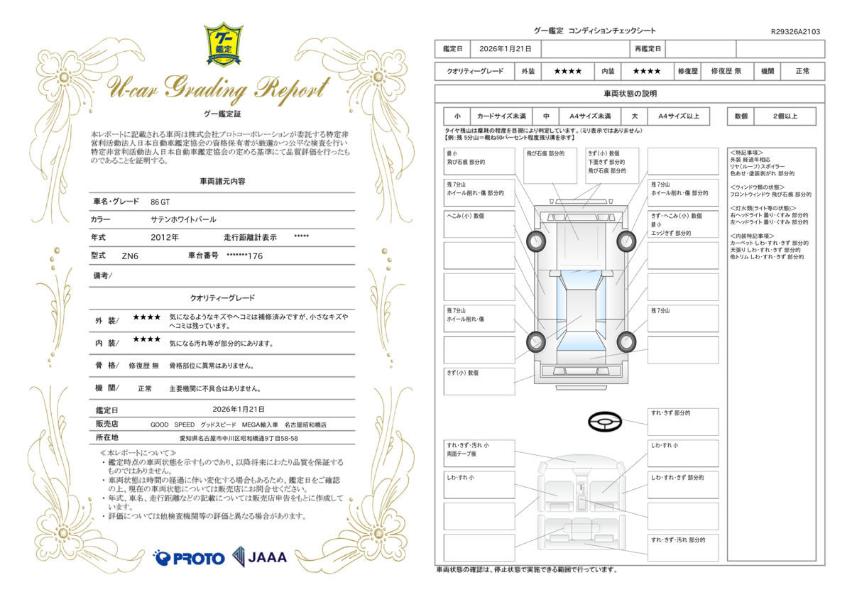 [保証付]:1ヶ月・1000km ※いずれか早い時期が保証適用の条件となります。 業界高水準、最長保証期間はなんと15年。保証項目406部位。任意による1年毎の更新が可能な新しいアフターサービス「GOOD SPEEDオリジナル プレミアムワランティー」をご用意させて頂いております。 |