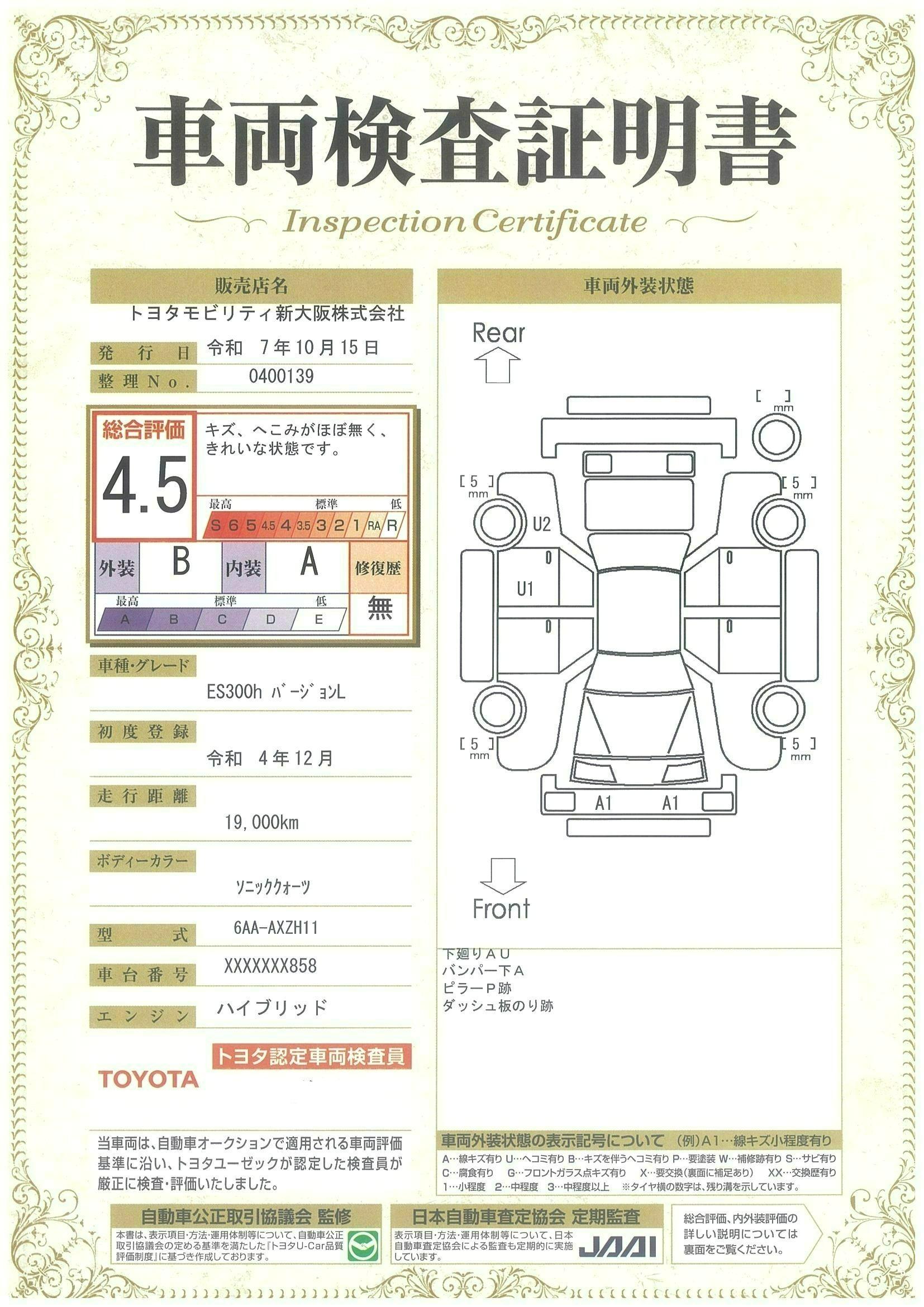 [保証付]:12ヶ月・走行無制限 万一のトラブルの場合、保証書に基づいて1年間走行距離無制限で無償修理を行います。全国のレクサス、トヨタディーラー、お近くのサービス工場で対応可能です。 |