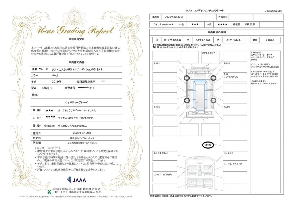[保証付]:3ヶ月・3000km ※いずれか早い時期が保証適用の条件となります。 3か月3,000km(いずれか早い方を適用)の基本保証です。保証項目適用範囲内であれば、修理費¥50,000までを当社が負担させて頂きます。※詳しくは当社営業スタッフまでお問合せ下さい。 |