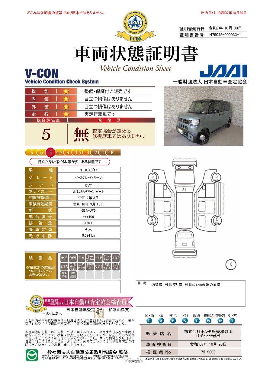 N−BOXジョイ ベースグレード 当社デモカー 8インチコネクトナビ ETC 0703153A30251030W001 1