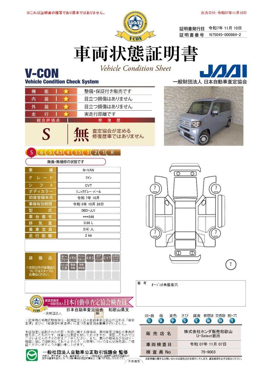N−VAN ファン 届出済未使用車 オーディオレス LEDヘッドライト 0703153A30251110W001 1