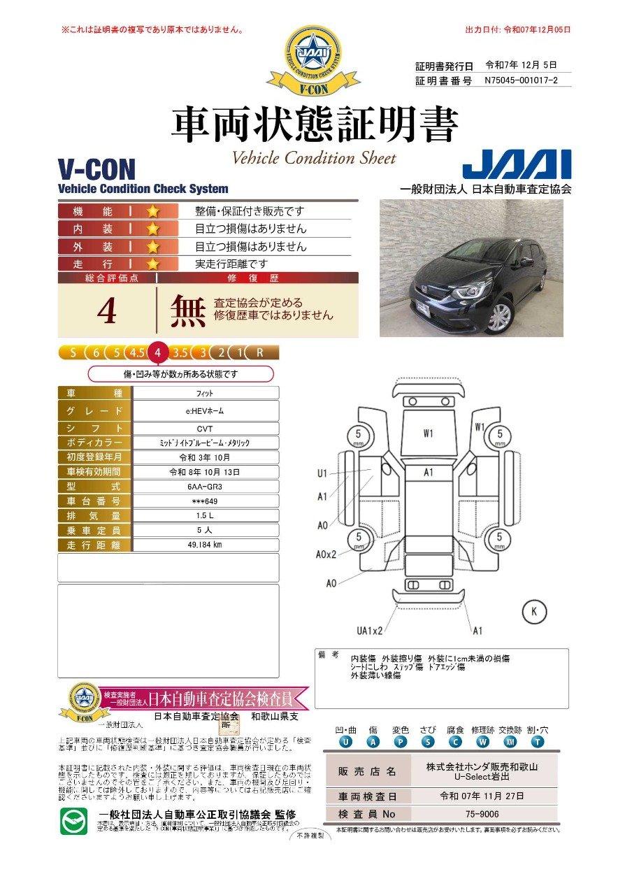 弊社での販売車両はホンダのユーセレクト認定を受けた車両です。原則全国のホンダにて1年間、走行距離無制限にて保証対応可能です。