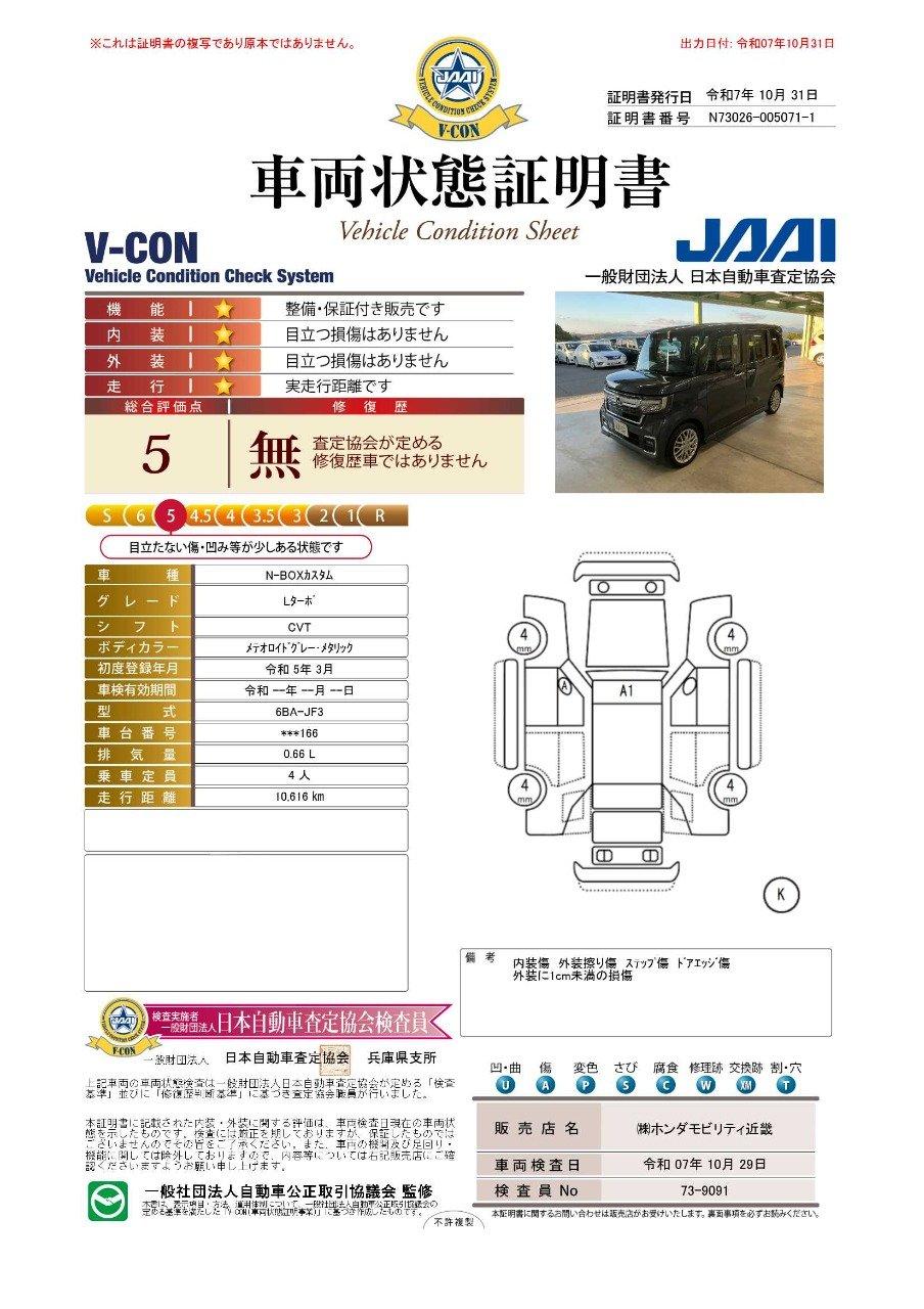 当店の展示車両は全車、JAAI(一般財産法人日本自動車査定協会)の第三者機関による公平で厳正な中古車の車両検査を実施しております。安心してご購入頂けるように努めております。
