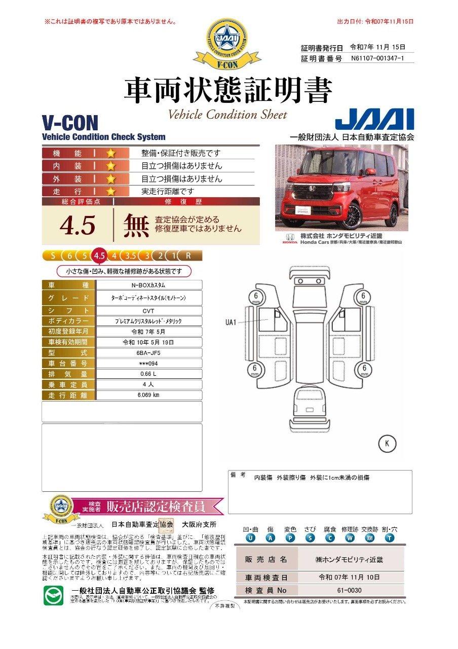 ◆車両状態証明書◆一般財団法人日本自動車査定協会の車両状態証明書です。 7