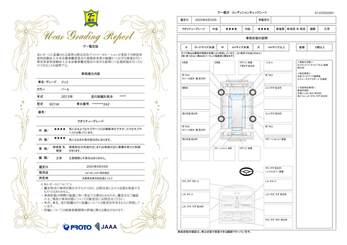 グー鑑定とは、お客様に代わってプロの鑑定師が中古車の車両状態を鑑定するサービスです。第三者機関のプロの鑑定師によりチェックを行い、公正にグレードを定めます♪