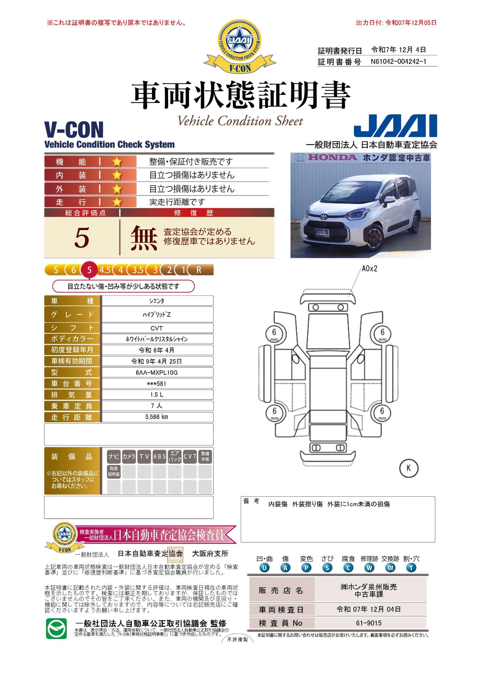 | 保証修理受付先 | 当店へご連絡下さい。お近くのホンダ泉州のサービス工場または全国のHondaディーラーサービス工場をお手配いたします。 |