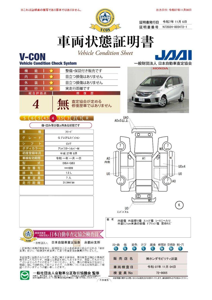 | 保証修理受付先 | 当店へご連絡下さい。当社または、お近くのホンダディーラーサービス工場をお手配いたします。 |