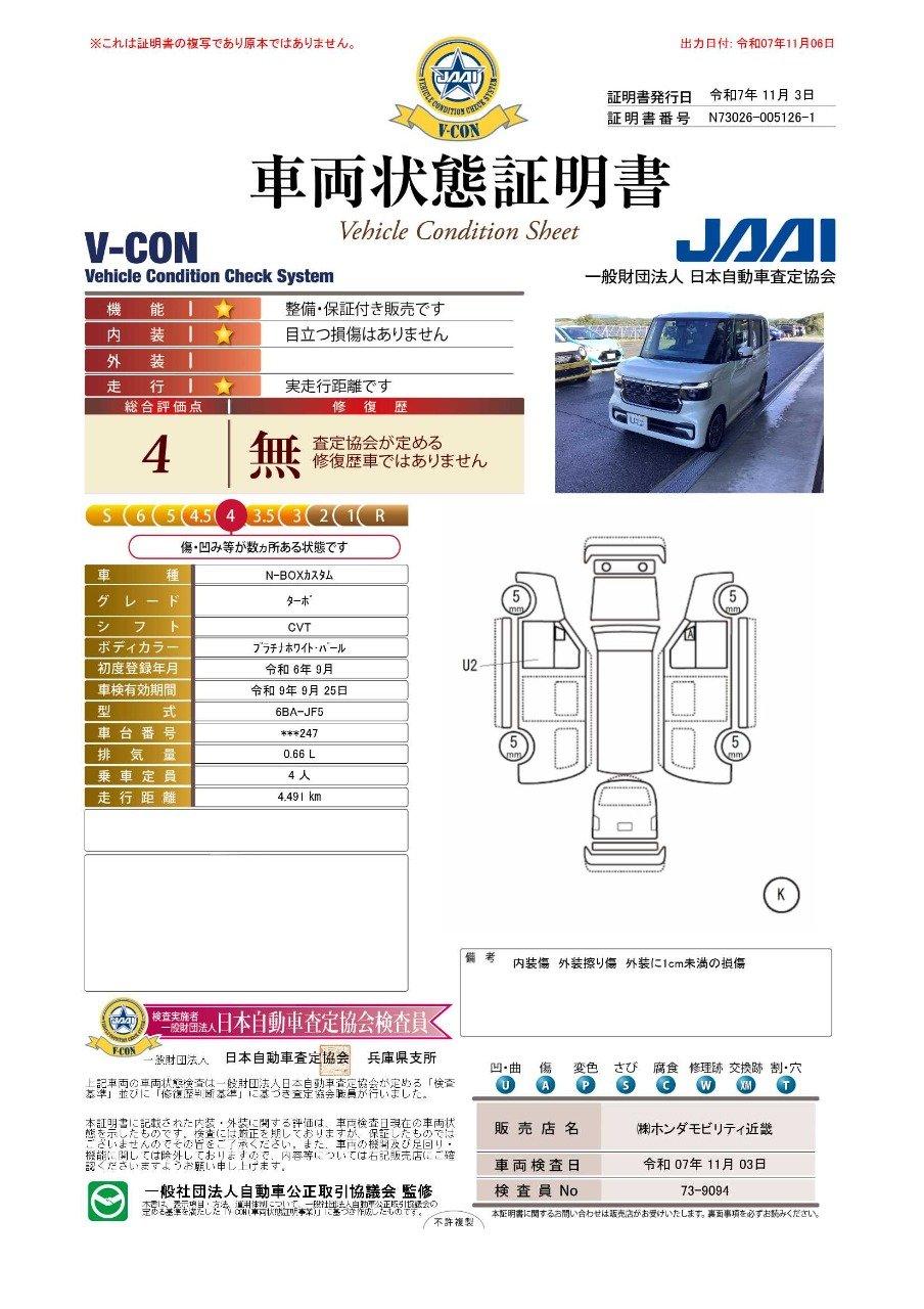 | 保証修理受付先 | 当店へご連絡下さい。当社または、お近くのホンダディーラーサービス工場をお手配いたします。 |