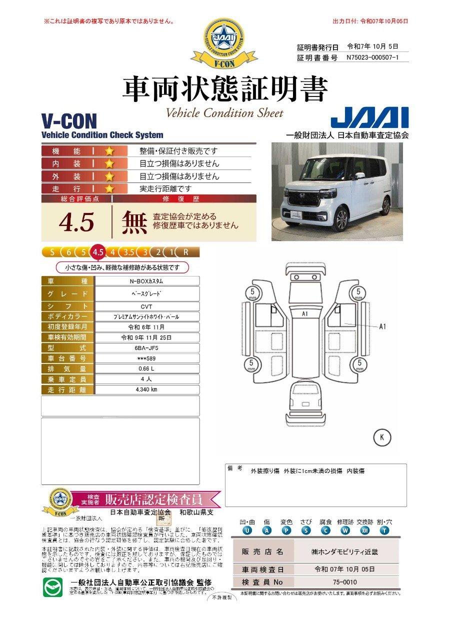 N−BOXカスタム ベースグレード 純正メモリーナビ ホンダセンシング LEDヘッドライト 0708740A30251013W048 1