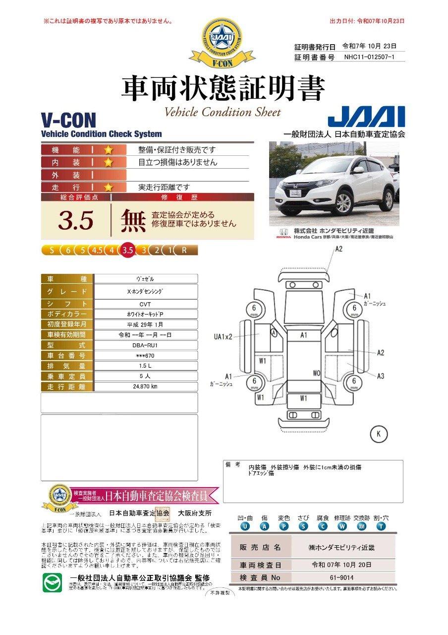 ◆車両状態証明書◆一般財団法人日本自動車査定協会京都府支所発行の車両状態証明書です。 9
