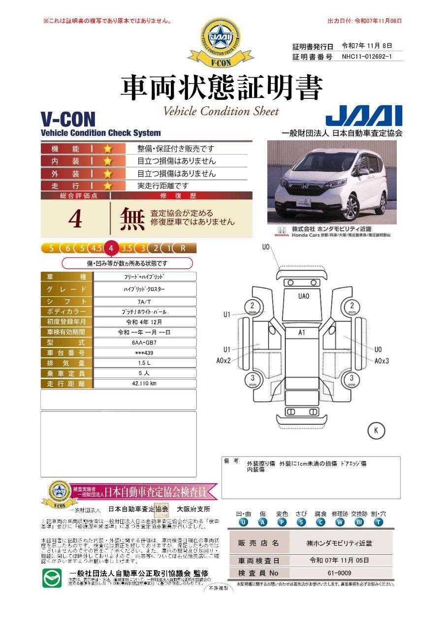 | 保証修理受付先 | 当店へご連絡下さい。当社または、お近くのホンダディーラーサービス工場をお手配いたします。 |