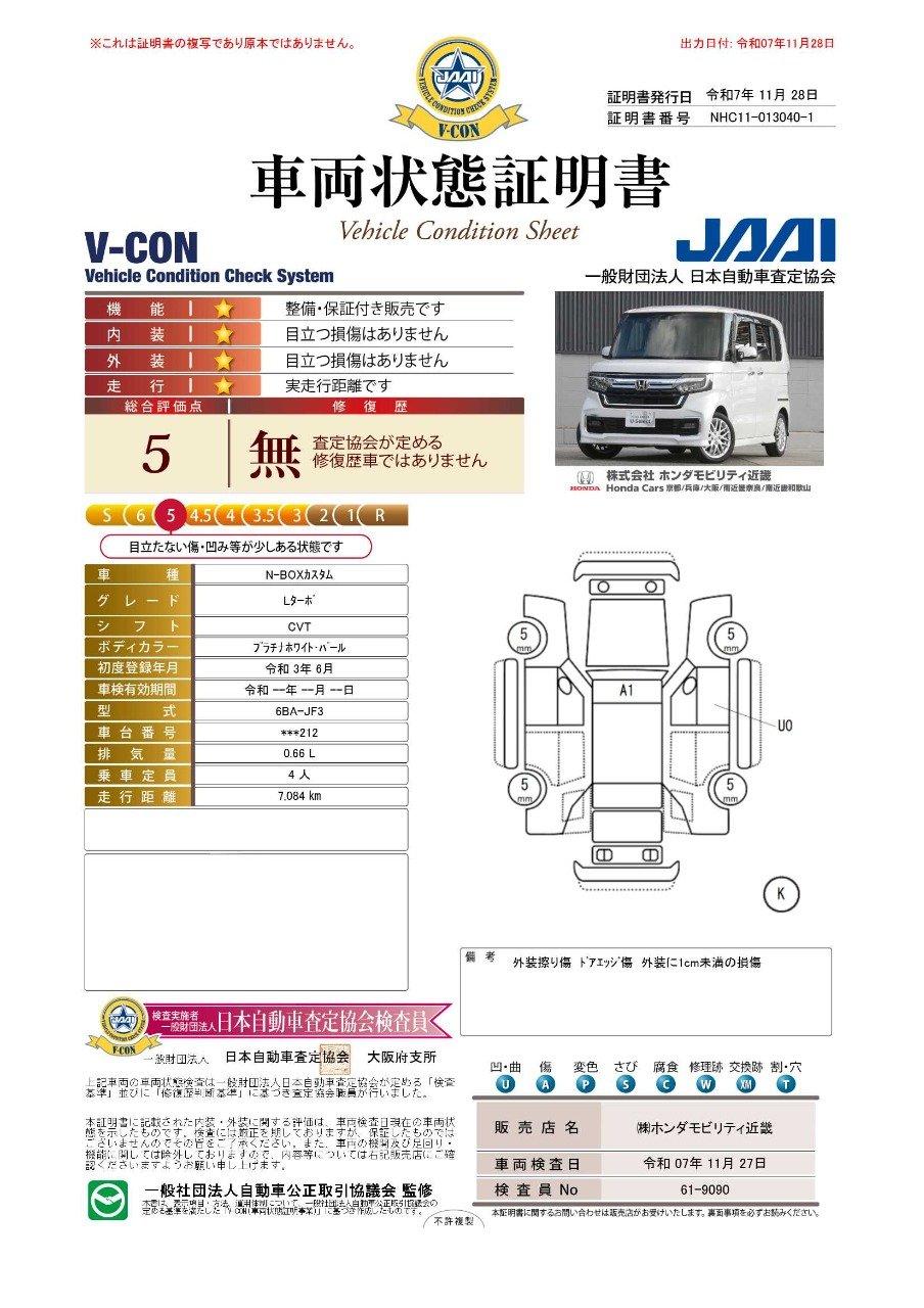 ◆車両状態証明書◆一般財団法人日本自動車査定協会の車両状態証明書です。 7
