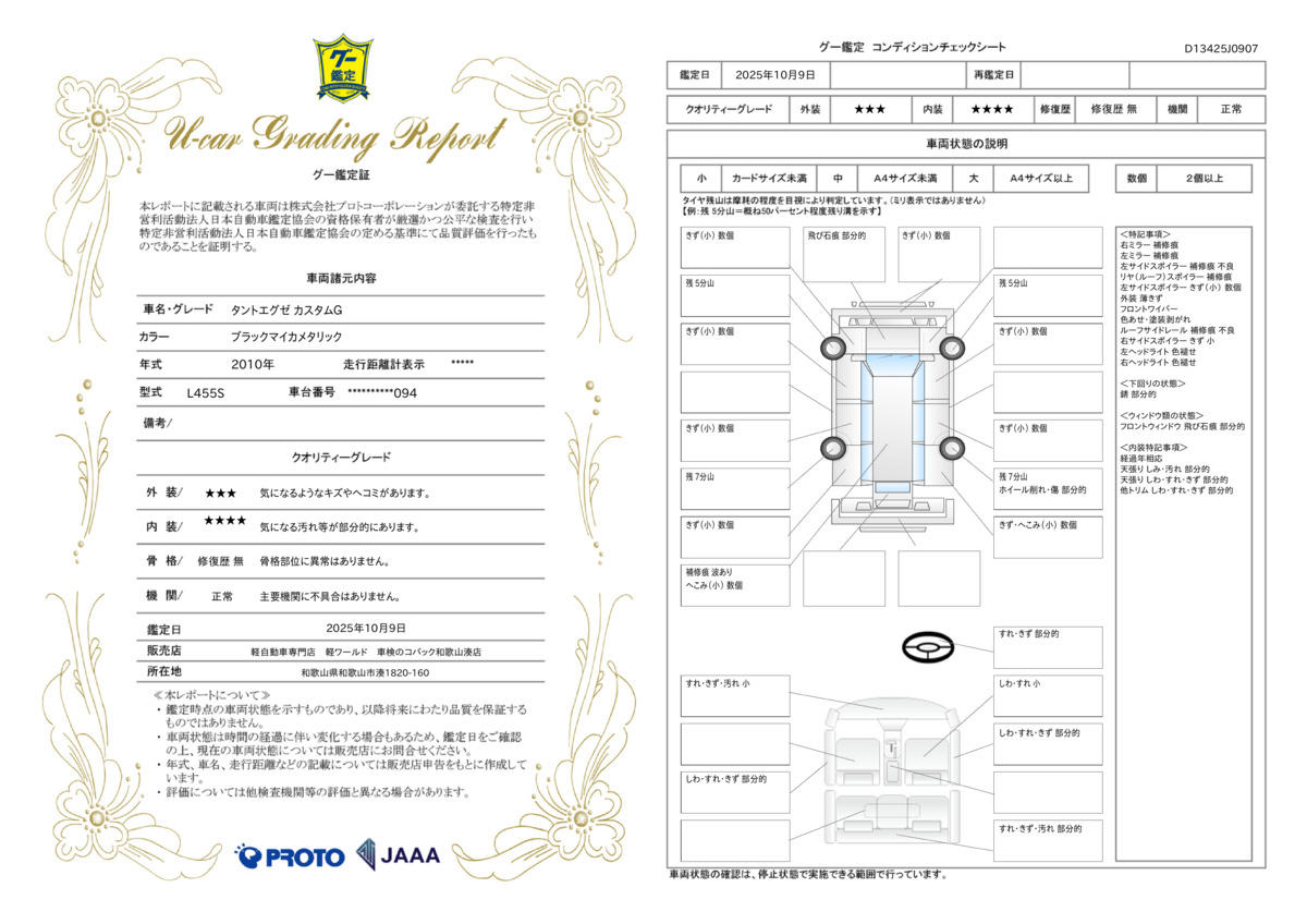 ダイハツ タントエグゼ カスタムG グー鑑定書付/ナビ/テレビ/CD/DVD/ラジオ/ETC車載器/スマートキー/ディスチャージヘッドライト/オートエアコン/純正14インチアルミホイール/ベンチシート/フルフラットシート