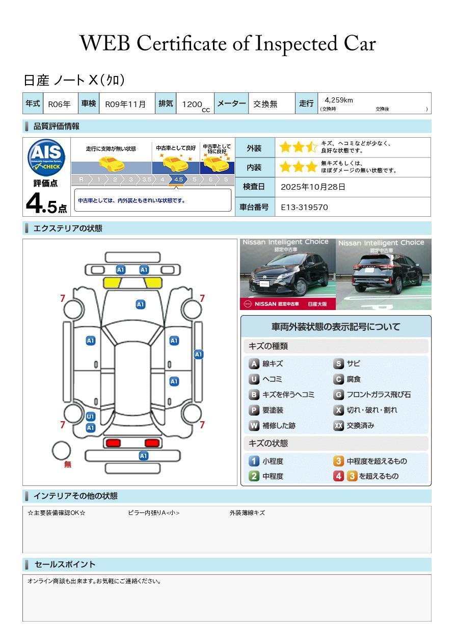 | 保証修理受付先 | 570−0011大阪府守口市金田町5−25―12 日産大阪販売株式会社 UCARS守口TEL06−6903−0265 |