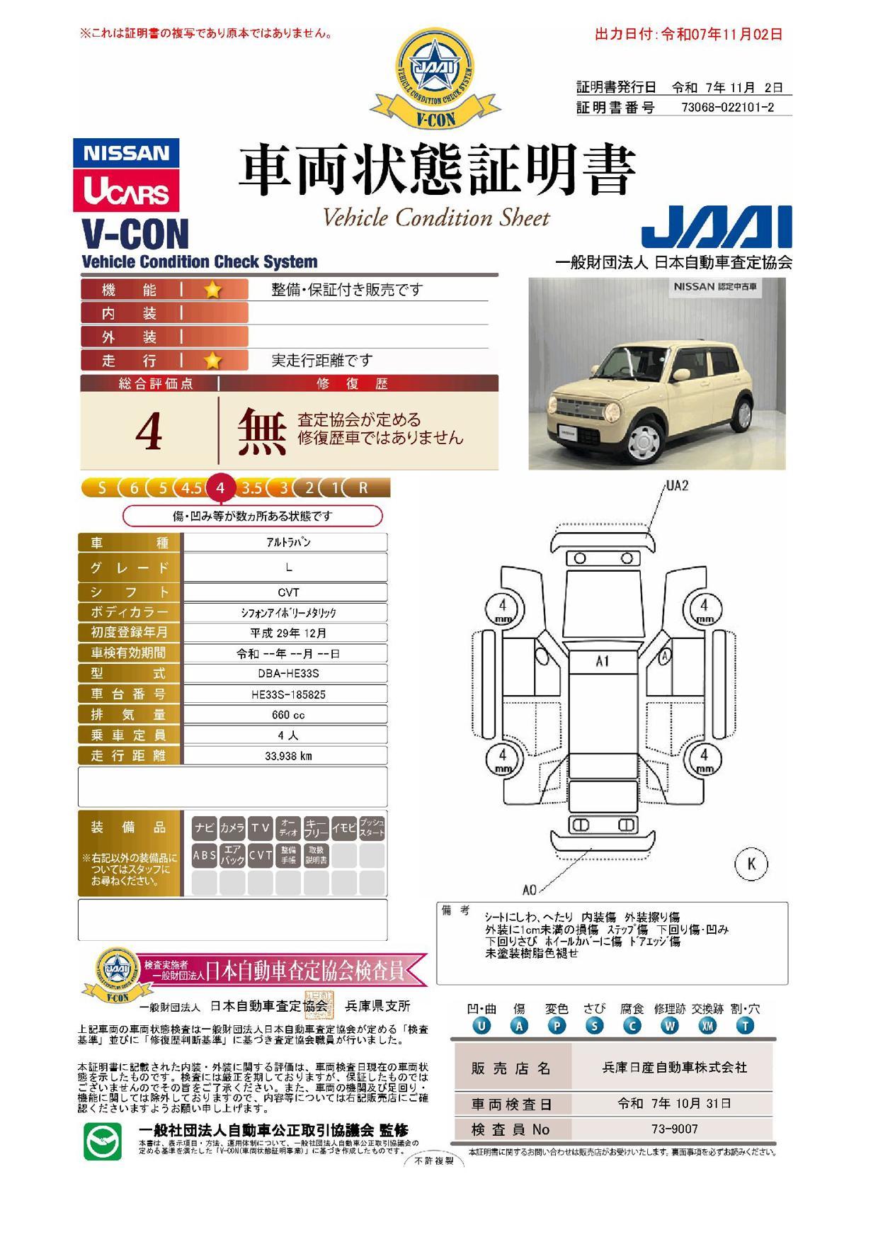 1年保証・走行距離無制限で全国約3.000箇所の日産サービス工場で対応できます。保証料追加でトータル3年まで延長できますので安心です。また納車後は1ヵ月無料点検付きなのでアフターサービスも万全です。