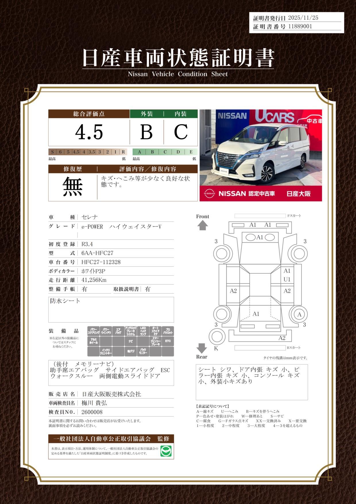 エンジン、ミッションはもちろんエアコンやパワーウィンドウ等電気まわりも2年間走行無制限保証込価格(後付け部品を除く)。全国の日産サービス工場で保証をお受けできますので遠方の方のご購入も安心です。