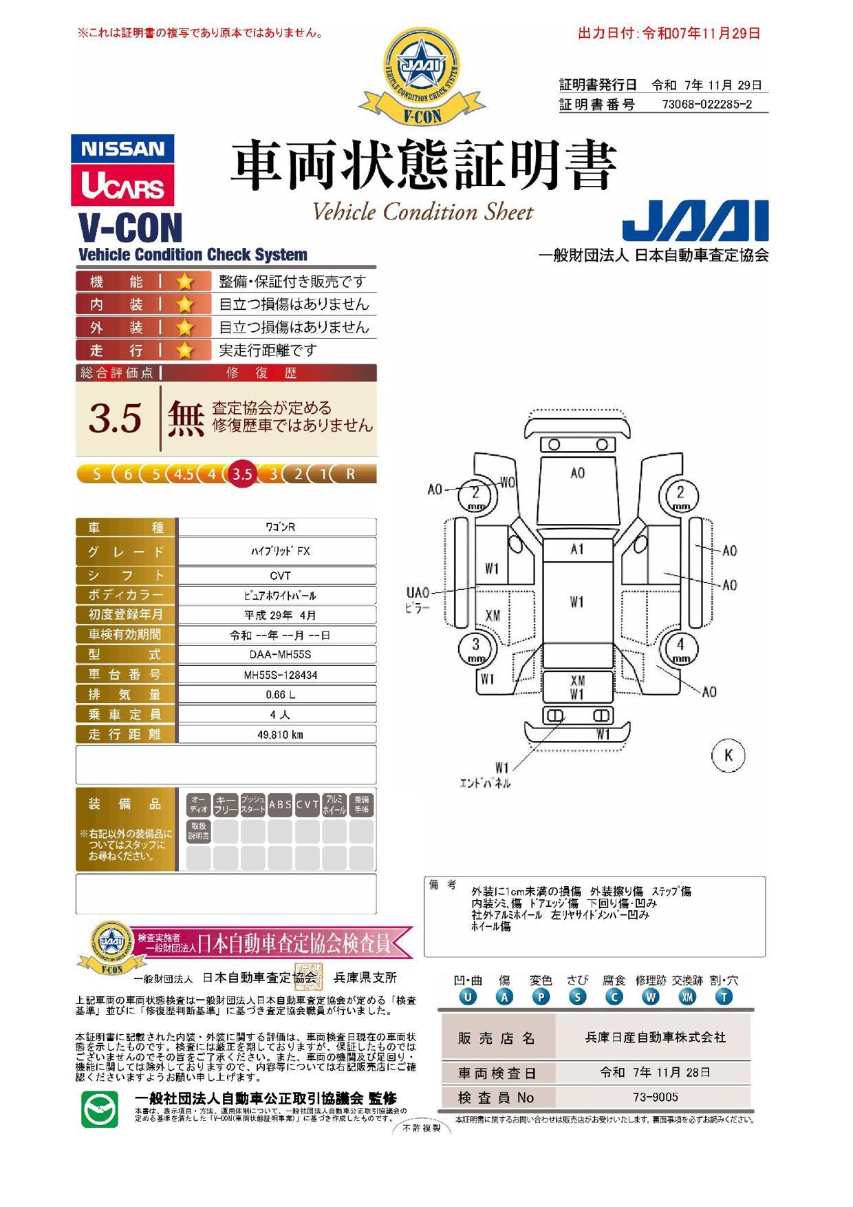 初度登録から5年未満走行距離5万Km無事故車を対象であり、尚且つプロの検査員による公平かつ確かな検査を行い、車両状態証明評価4.5以上の車両に対し、走行距離無制限&2年間の無料保証がつきます!(詳しくはスタッフまで)