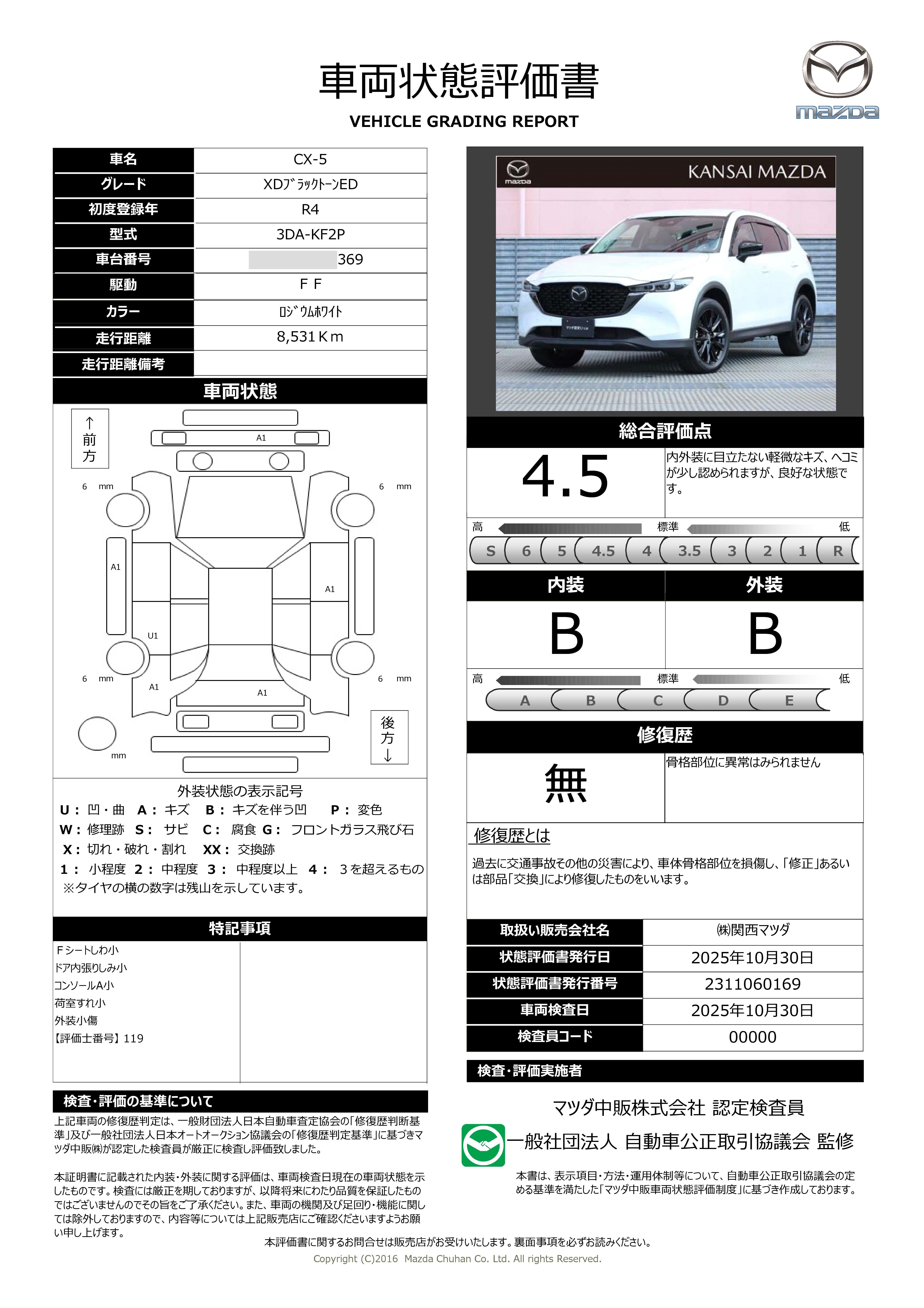 関西マツダの中古車は安心の「保証付き」「整備費用込み(点検記録簿付)」価格にて、表示させていただいています。マツダの中古車展示場にて、ご購入いただいたおクルマに、無料でご提供している保証サービスです。その他、納車1ヶ月後に、無料点検を実施。