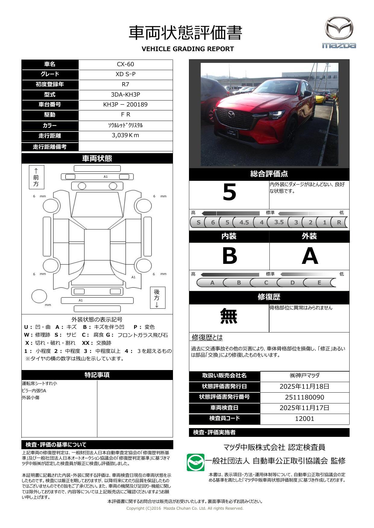 [保証付]:12ヶ月・走行無制限 メーカーの新車保証が付いています メーカー保証以外の箇所は、1年間、走行距離無制限のさわやか保証付きです!全国マツダディーラーのサービス拠点で保証修理をお受けいただけます。遠方のお客様も安心してご利用 |