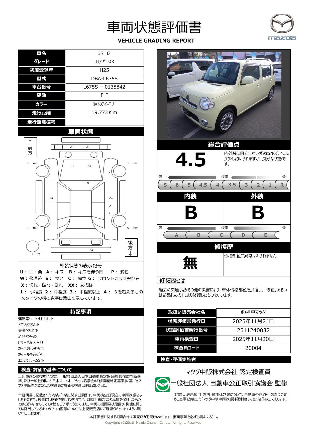 平成25年式 ミラココアが入荷しました ココアプラスX ワンオーナー車 1