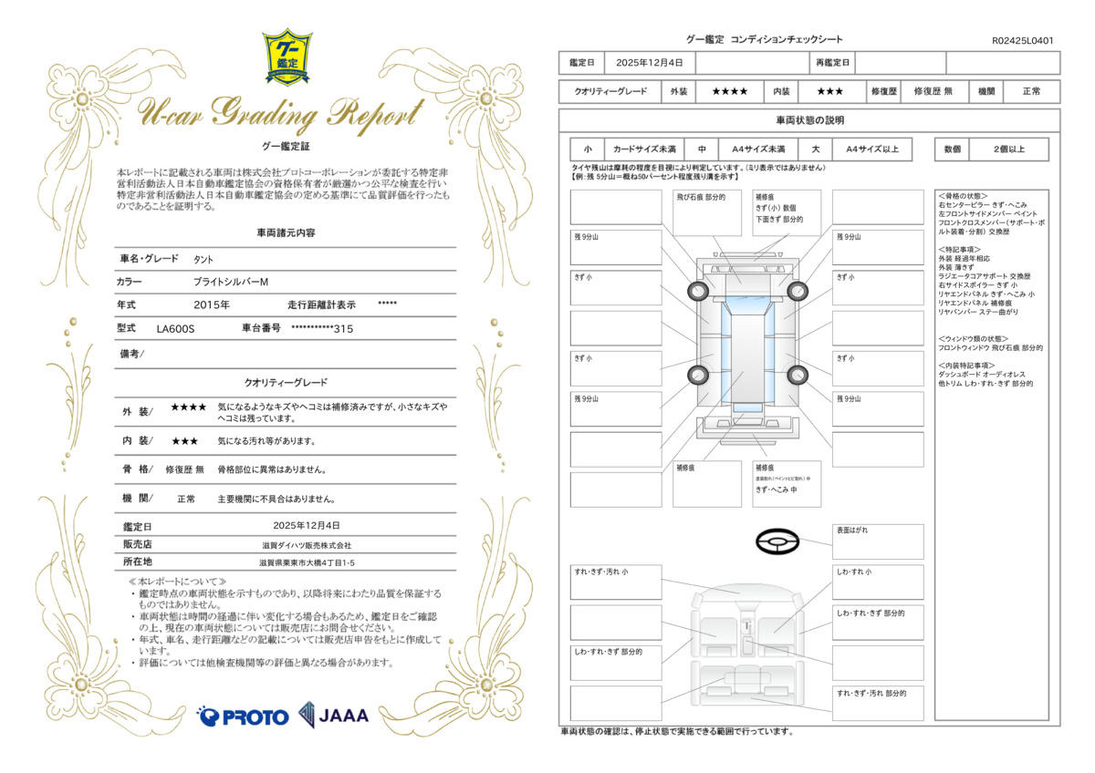 | 保証修理受付先 | 滋賀ダイハツご購入店舗へご連絡下さい。全国約700ヶ所のダイハツのお店で、新車同等レベルの保証修理が受けられます。お引越し先や旅先でのトラブルにも、近くのダイハツのお店が対応いたします。 |