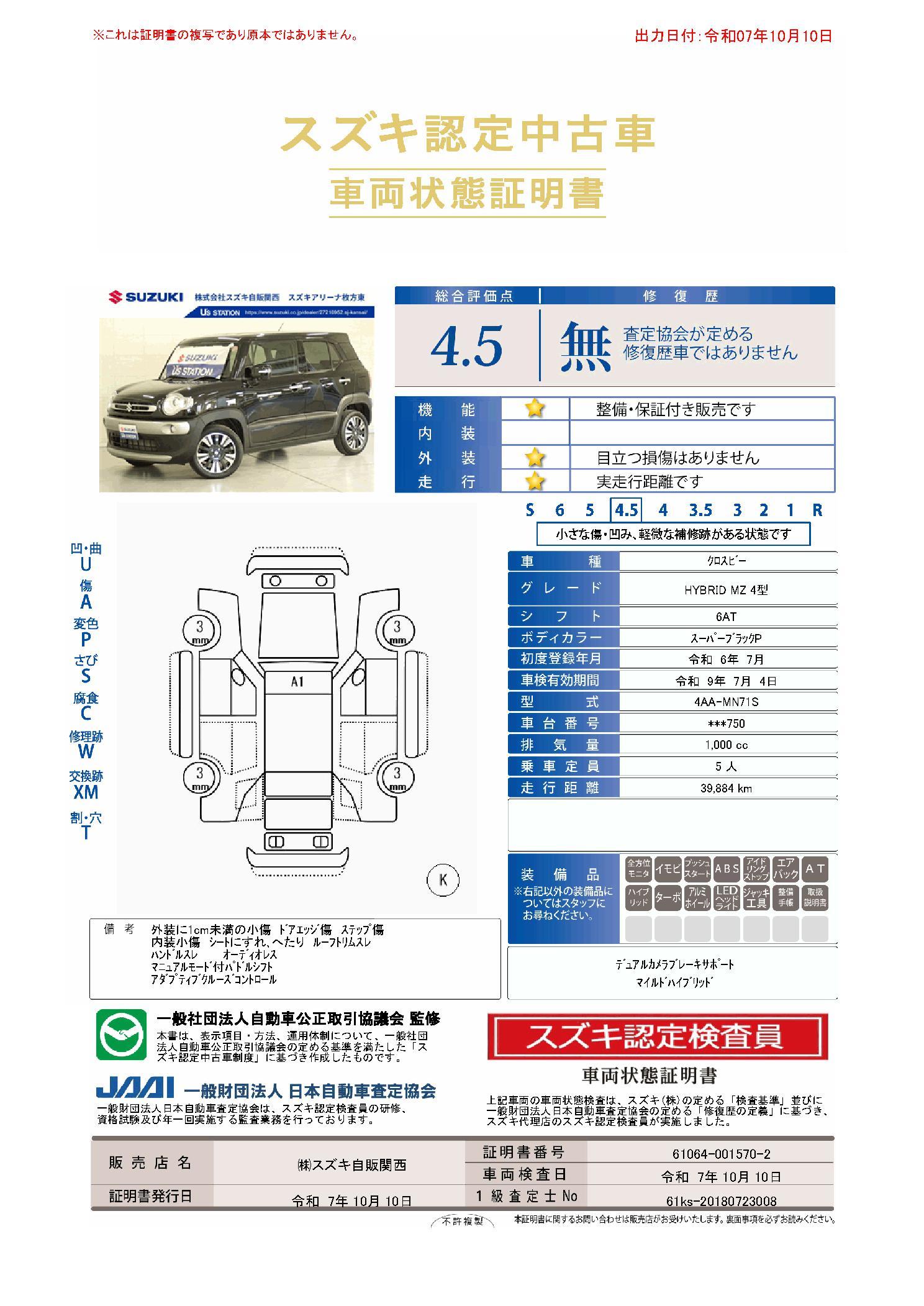 ご購入後も安心!スズキ自販関西の中古車は、全車「全国スズキディーラー統一保証付」!お車に合わせ、大きく分けて4つの保証をご用意しております。詳しくはスタッフまでお問い合わせください。 63