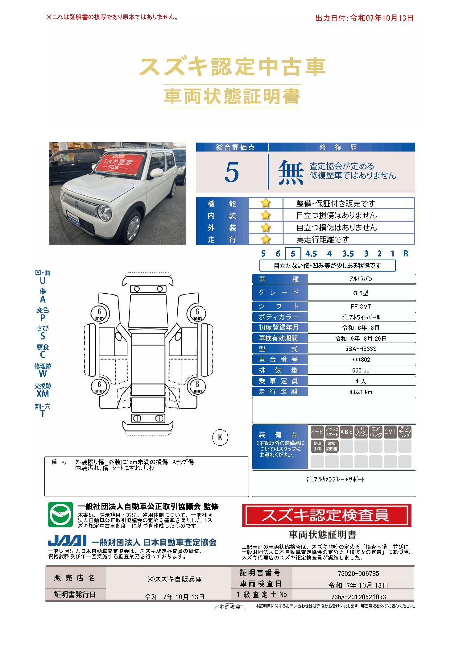 保証について | [保証付]:36ヶ月・走行無制限 |