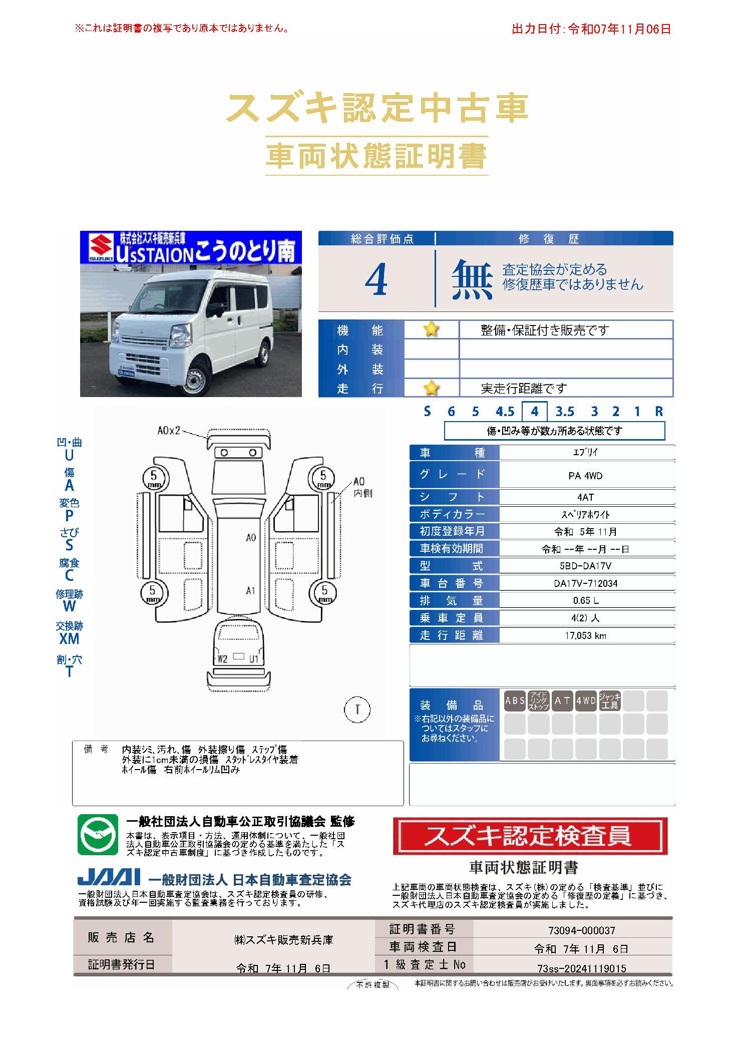 ご覧いただきありがとうございます。4WDのエブリイが入りました。 2