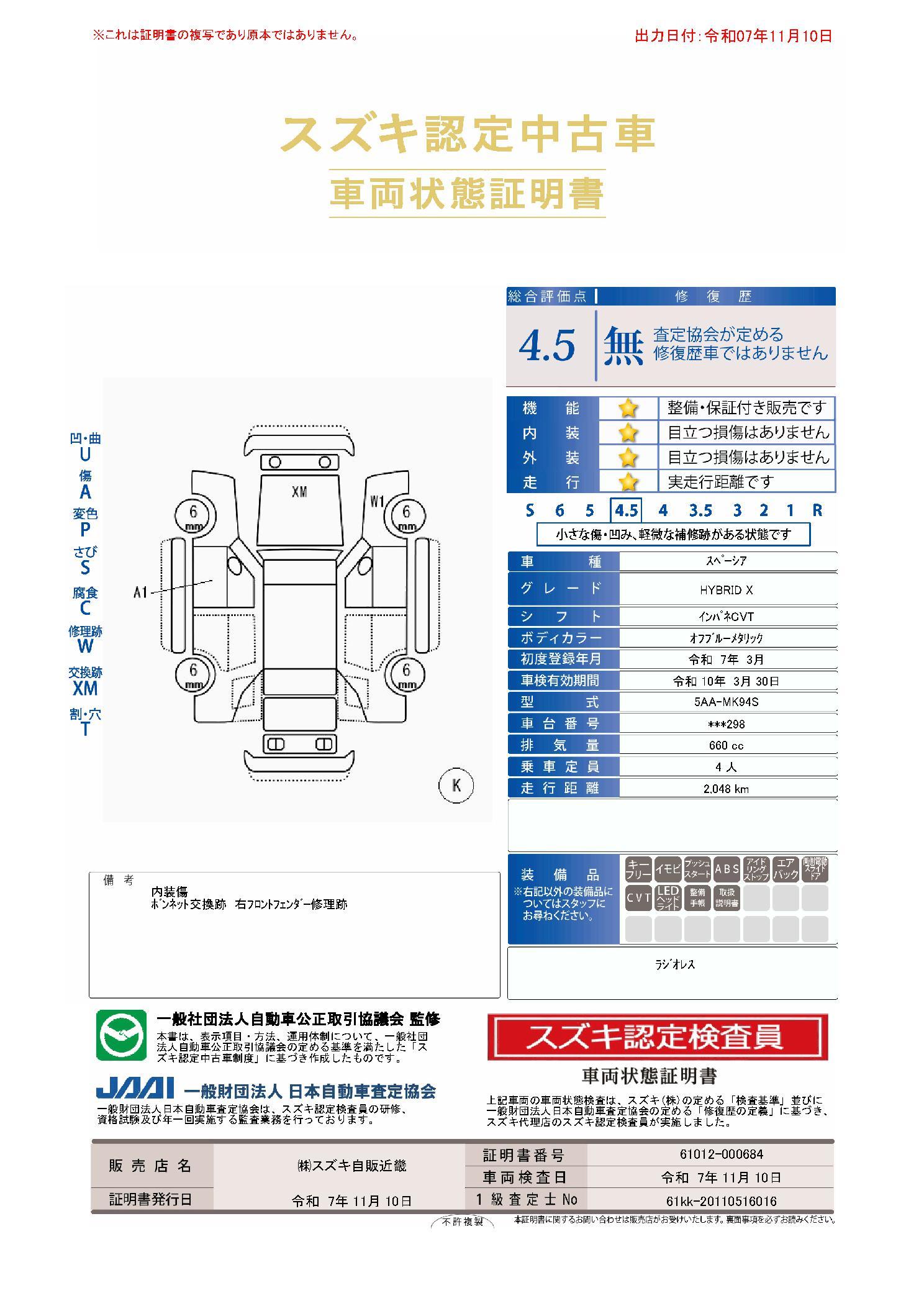 保証について [保証付]:2028(令和10)年3月まで・60000km ※いずれか早い時期が保証適用の条件となります。