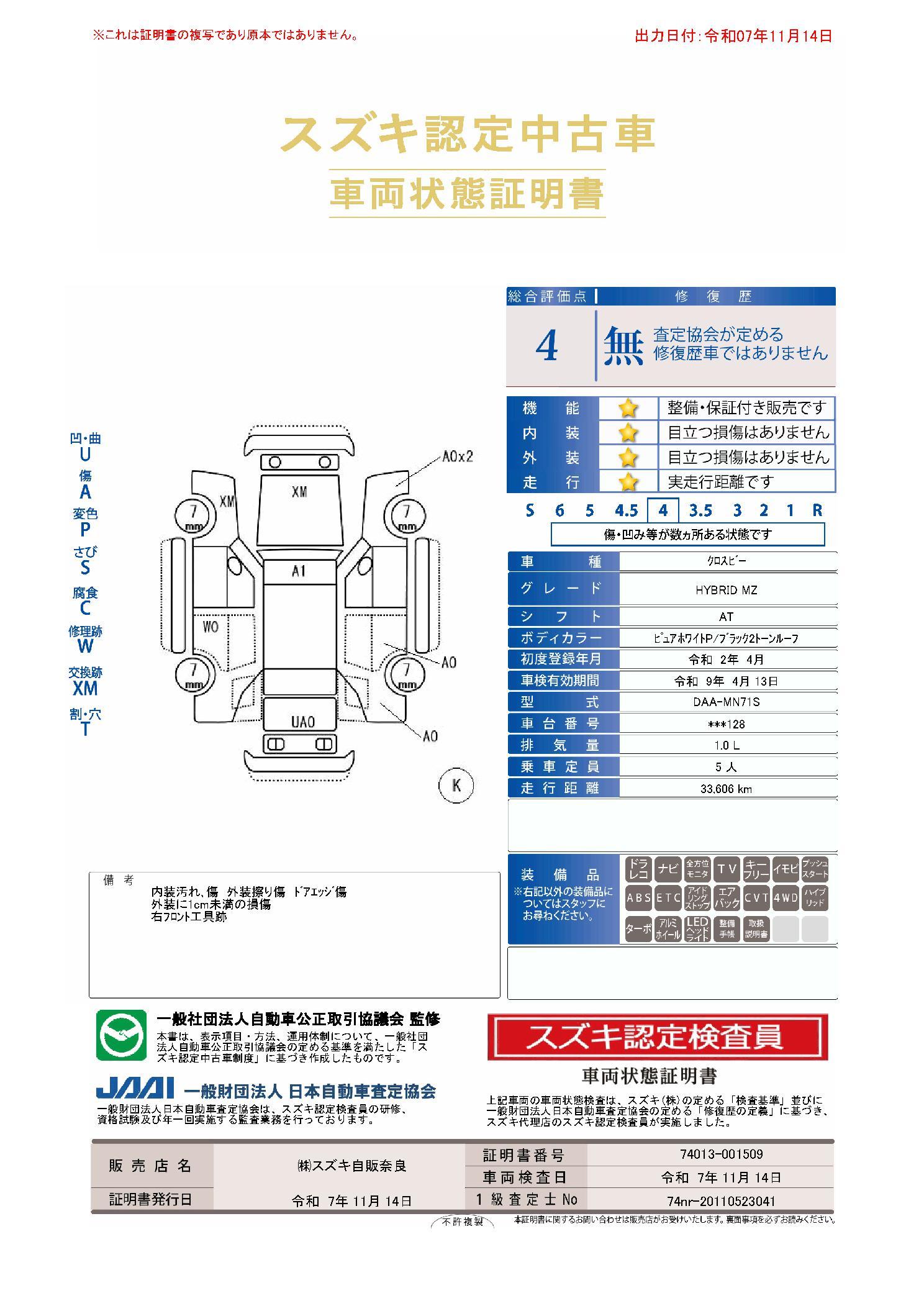 お客様に安心して乗って頂けるように『全車新車保証付き』で販売しておりますので全国スズキ直営店でメンテナンス受けられますので安心です♪