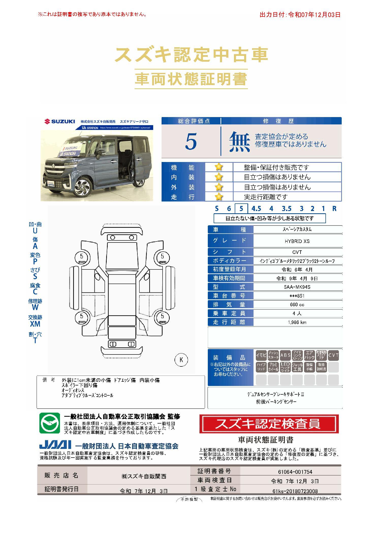 「現行スペーシア中古車」購入応援キャンペーン対象車! ※当社では業販及び転売目的の方への販売はお断りしております。 1